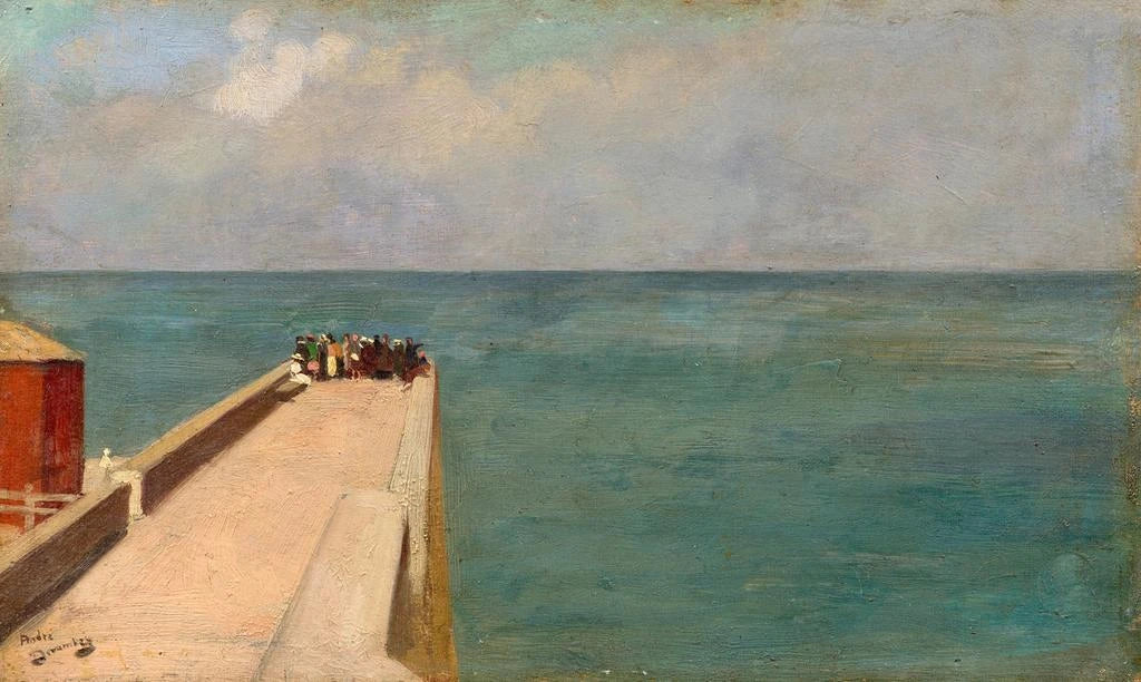 André Devambez, fransk konstnär verksam i slutet av 1800-talet och början av 1900-talet, är känd för sina skildringar av vardagslivet och genrebilder. Påverkad av impressionismen, lyckades han integrera modernitetselement i sina verk, samtidigt som han behöll en realistisk stil. Hans karriär präglades av en utforskning av marina teman, där han ofta avbildade hamnverksamhet och utomhusaktiviteter. "La jetée" illustrerar perfekt hans förmåga att fånga livets ögonblick, samtidigt som det vittnar om den växande betydelsen av havet i den franska kulturen under den tiden. Devambez lyckades bevara scener som fortfarande klingar i dagens öron.