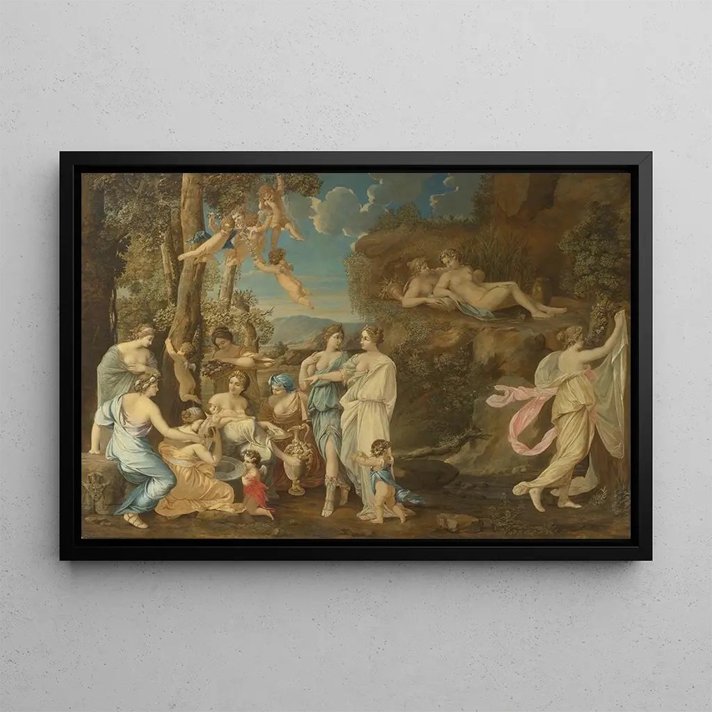 La Naissance de Bacchus : une célébration de la mythologie La Naissance de Bacchus, œuvre emblématique du Maître de Hovingham, plonge le spectateur dans un univers mythologique vibrant. Les couleurs chaudes et dorées se mêlent harmonieusement, créant une atmosphère à la fois festive et divine. La composition, riche en détails, met en scène des figures mythologiques entourées de vignes luxuriantes, symboles de la joie et de l'abondance. Chaque coup de pinceau semble capturer l'essence de la fête, invitant à une contemplation profonde de la nature humaine et de ses plaisirs. Cette toile évoque un moment de grâce où le divin rencontre le terrestre, offrant une vision poétique de la naissance d'un dieu. Le Maître de Hovingham : un artiste mystérieux du XVIIe siècle Le Maître de Hovingham, dont l'identité réelle reste incertaine, est un artiste du XVIIe siècle dont les œuvres reflètent l'influence des grands maîtres de la Renaissance. Son style, marqué par une attention minutieuse aux détails et une palette riche, témoigne d'une période où l'art baroque commençait à s'imposer. Bien que peu d'informations soient disponibles sur sa biographie, ses créations, telles que La Naissance de Bacchus, révèlent une profonde compréhension des thèmes mythologiques et une capacité à capturer l'émotion humaine. Ce mystère autour de son identité ajoute une dimension intrigante à son héritage artistique. Une acquisition décorative aux multiples atouts La reproduction de La Naissance de Bacchus est une pièce décorative idéale pour enrichir votre intérieur, que ce soit dans un salon, un bureau ou une chambre. Sa qualité d'impression et sa fidélité aux détails originaux garantissent un attrait esthétique indéniable, apportant une touche de sophistication à votre décoration. En intégrant ce tableau dans votre espace, vous invitez non seulement la beauté de l'art baroque, mais aussi une conversation sur la mythologie et l'histoire. Cette toile, par son éclat et sa profondeur, saura séduire tous les amateurs d'art et d'esthétique raffinée.