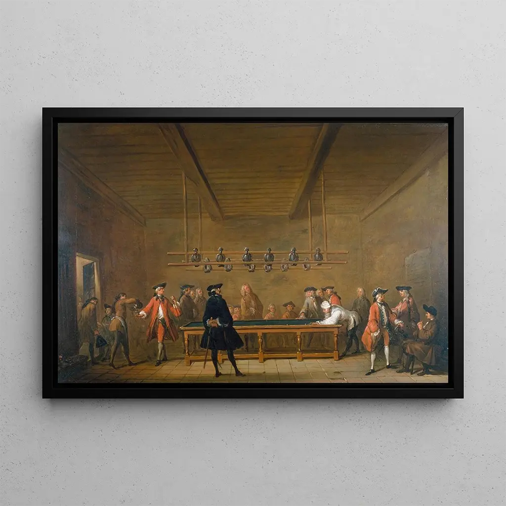 La Partie de billard : un moment de vie figé dans le temps La Partie de billard, œuvre emblématique de Jean Siméon Chardin, nous plonge dans une scène intimiste où le jeu et la contemplation se rencontrent. La composition est soigneusement orchestrée, mettant en avant des personnages absorbés par leur activité. Les couleurs chaudes et terreuses, typiques du style de Chardin, créent une atmosphère conviviale et chaleureuse. La lumière douce éclaire subtilement les visages, accentuant l'intensité de l'instant. Cette toile, réalisée avec une technique de peinture à l'huile maîtrisée, invite le spectateur à s'immiscer dans ce moment de partage et de convivialité, où chaque détail raconte une histoire. Jean Siméon Chardin : le maître du quotidien Jean Siméon Chardin, peintre français du XVIIIe siècle, est reconnu pour sa capacité à capturer la beauté des scènes de la vie quotidienne. Influencé par le mouvement rococo, Chardin s'éloigne des thèmes grandioses pour se concentrer sur des sujets simples et accessibles. Sa carrière, marquée par une reconnaissance tardive, a été jalonnée de succès, notamment avec des œuvres comme La Partie de billard. Chardin a su intégrer une profondeur émotionnelle à ses compositions, transformant des moments ordinaires en véritables chefs-d'œuvre. Son style, caractérisé par une attention minutieuse aux détails et une palette de couleurs délicates, a laissé une empreinte indélébile dans l'histoire de l'art. Une acquisition décorative aux multiples atouts La reproduction de La Partie de billard est un choix décoratif idéal pour enrichir votre intérieur, que ce soit dans un salon, un bureau ou une chambre. Sa qualité de reproduction garantit une fidélité remarquable à l'œuvre originale, permettant de profiter de la beauté de cette scène intemporelle. L'attrait esthétique de cette toile réside dans sa capacité à évoquer des émotions et à susciter des conversations. En intégrant ce tableau dans votre décoration, vous apportez une touche d'élégance et de culture, tout en célébrant l'art de la vie quotidienne, si cher à Chardin.