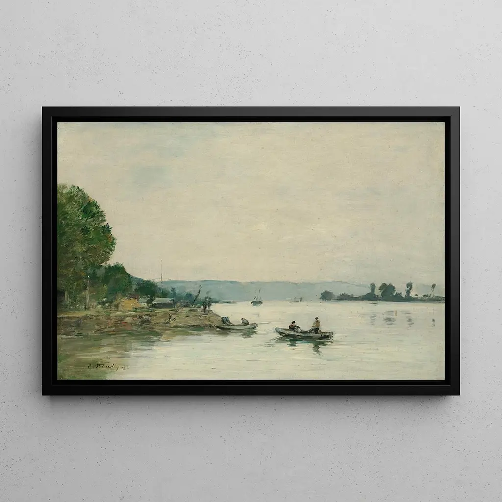 La Seine à Caudebec-en-Caux : un poème visuel au bord de l'eau. Dans cette reproduction de la toile d'Eugène Boudin, la Seine se dévoile sous un ciel nuageux, où les reflets de la lumière dans l'eau créent une atmosphère poétique. Les nuances de bleu et de vert se mêlent harmonieusement, évoquant la tranquillité d'un moment passé au bord de la rivière. Les voiles blanches des bateaux ajoutent une touche de mouvement à cette scène paisible, tandis que les arbres en arrière-plan encadrent le paysage avec douceur. Cette œuvre capture l'essence de la nature et la beauté des paysages normands, invitant le spectateur à une promenade contemplative. Eugène Boudin : le précurseur de l'impressionnisme. Eugène Boudin est un peintre français du XIXe siècle, souvent considéré comme l'un des précurseurs de l'impressionnisme. Né à Honfleur, il a été influencé par la lumière et les paysages de la côte normande, qu'il a su traduire avec une palette vibrante et des coups de pinceau libres. Boudin a joué un rôle essentiel dans le développement de la peinture en plein air, encourageant d'autres artistes, dont Monet, à explorer cette approche. Son œuvre témoigne d'une sensibilité unique à la nature et à la lumière, faisant de lui une figure clé dans l'histoire de l'art français. Une acquisition décorative aux multiples atouts. Cette reproduction de "La Seine à Caudebec-en-Caux" est parfaite pour embellir votre espace de vie, que ce soit dans un salon, un bureau ou une chambre. Sa qualité d'impression et son respect des détails originaux en font un choix décoratif de premier ordre. En ajoutant ce tableau à votre collection, vous apportez une touche de sérénité et d'élégance à votre intérieur. L'œuvre de Boudin invite à la rêverie et à la contemplation, transformant chaque regard en une évasion vers les paysages enchanteurs de la Normandie. Offrez-vous cette toile pour enrichir votre décor avec une pièce d'art inspirante et intemporelle.