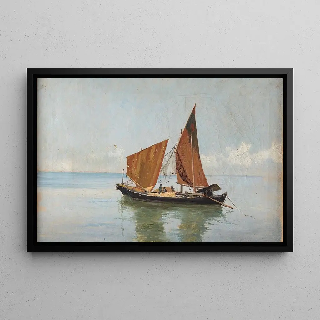 Lagune avec embarcation : une sérénité aquatique à contempler La reproduction de Lagune avec embarcation nous plonge dans un univers paisible où l’eau et la lumière dansent en harmonie. Les nuances de bleu et de vert se mêlent délicatement, créant une atmosphère apaisante qui invite à la rêverie. La technique de Pietro Barucci, caractérisée par des coups de pinceau fluides, donne vie à cette scène tranquille, où une petite embarcation glisse doucement sur les flots. Les reflets de la lumière sur l’eau ajoutent une dimension presque magique à l’œuvre, capturant l’essence d’un moment suspendu dans le temps. Pietro Barucci : un maître de la lumière et de la couleur Pietro Barucci, peintre italien du XXe siècle, est reconnu pour sa capacité à capturer la beauté des paysages aquatiques. Influencé par l’impressionnisme, il a su développer un style unique, alliant des techniques traditionnelles à une sensibilité moderne. Sa carrière, marquée par de nombreuses expositions, témoigne de l’importance de son œuvre dans le panorama artistique de son époque. Les paysages de Barucci, souvent empreints de sérénité, reflètent son amour pour la nature et sa quête de la lumière, faisant de lui un artiste incontournable du mouvement post-impressionniste. Une acquisition décorative aux multiples atouts Opter pour une reproduction de Lagune avec embarcation, c’est choisir une toile qui apportera une touche de sérénité à votre intérieur. Que ce soit dans un salon, un bureau ou une chambre, cette œuvre s’intègre harmonieusement à divers styles de décoration. Sa qualité d’impression garantit une fidélité aux couleurs et aux détails de l’original, tout en offrant un attrait esthétique indéniable. En ajoutant cette reproduction à votre collection, vous invitez non seulement la beauté de la nature chez vous, mais aussi un morceau de l’histoire de l’art qui saura captiver vos invités.