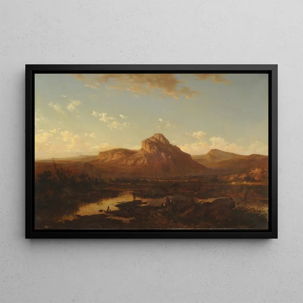 I denna konsttryck av målningen Landskap förflyttar Carlos de Haes oss till hjärtat av en lugnande natur, där nyanser av grönt smälter samman med blåa inslag i himlen. Kompositionen, noggrant balanserad, inbjuder till en tyst reflektion. Detaljerna av träd och kullar, återgivna med en impressionistisk teknik, skapar en atmosfär av stillhet, nästan meditativ. Ljuset spelar en avgörande roll, lyser upp de naturliga elementen och ger hela verket en nästan drömlik dimension. Detta konsttryck är en sann hyllning till landskapets skönhet, som fångar naturens essens.
