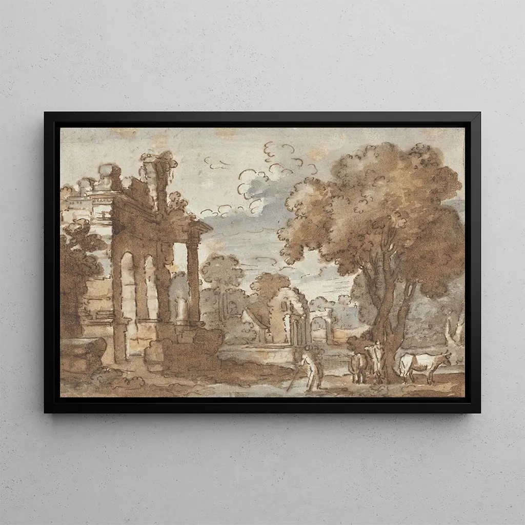 Paysage : en hyllning till den naturliga skönheten Den konsttryck av Landskap, inspirerad av Claude Lorrains stil, framkallar en orubblig lugn och harmoni. Denna målning, badad i gyllene ljus, föreställer ett idylliskt landskap där naturen blomstrar i all sin prakt. De delikata nyanser av grönt och blått, kombinerade med ljusinslag, skapar en fridfull och drömmande atmosfär. Lorrains teknik, kännetecknad av hans mästerliga användning av ljus och skuggor, ger liv åt denna konsttryck, inbjuder betraktaren att förlora sig i denna poetiska, pastoral scen. Claude Lorrain : den klassiska landskapets mästare Claude Lorrain, fransk målare från 1600-talet, är erkänd som en av pionjärerna inom konsttryck av landskap. Hans verk har djupt påverkat framställningen av landskap inom europeisk konst. Lorrain lyckades fånga naturens skönhet med en oöverträffad precision och känslighet, och förvandlade vardagliga scener till verkliga mästerverk. Landskap, som är emblematiskt för hans stil, visar hans skicklighet att kombinera natur och arkitektur i en harmonisk komposition. Hans arv består, och inspirerar generationer av konstnärer att utforska landskapets subtiliteter. En dekorativ konsttryck med många fördelar Konsttrycket av Landskap är ett perfekt dekorativt val för att försköna ditt hem, oavsett om det är ett vardagsrum, ett kontor eller ett sovrum. Dess utskriftskvalitet garanterar en anmärkningsvärt trogen återgivning av detaljer och färger i originalverket, och tillför en touch av elegans till ditt utrymme. Denna målning, med sin lugnande atmosfär och tidlösa skönhet, kommer att tilltala dina gäster och skapa en varm stämning. Genom att integrera detta konsttryck i din inredning, gör du ett val för konst som överskrider tiden och inbjuder till eftertanke.