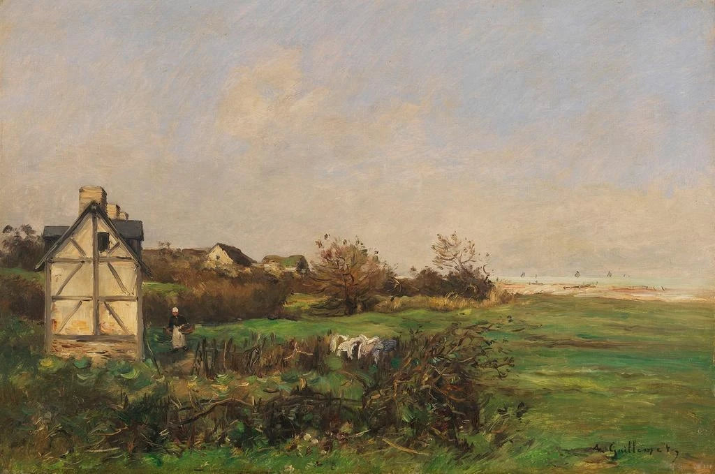 Antoine Guillemet, fransk konstnär från 1800-talet, är erkänd för sin förmåga att fånga skönheten i landsbygdslandskapen. Påverkad av romantiken och impressionismens tidiga steg, speglar hans konstverk en särskild känslighet för ljus och natur. Guillemet har ofta utforskat teman kring vardagslivet på landet, i jakten på att för evigt bevara enkla men uttrycksfulla scener. Hans karriär, även om den är mindre känd än hans samtida, har lämnat ett betydande avtryck inom konstvärlden och vittnar om en tid då naturen hyllades som en fristad mot den växande industrialiseringen.