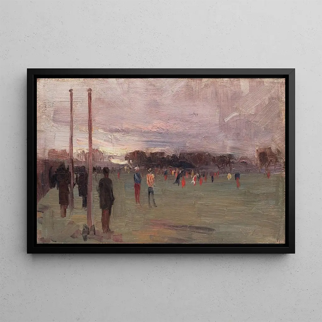 Le jeu national : une célébration de la vie en plein air Dans "Le jeu national", Arthur Streeton capture l'essence vibrante d'une journée ensoleillée, où la lumière joue sur les visages des personnages engagés dans une activité joyeuse. Les couleurs éclatantes, allant des verts luxuriants aux bleus azurés, évoquent une atmosphère de convivialité et de liberté. La technique impressionniste de Streeton, avec ses coups de pinceau fluides et dynamiques, donne vie à cette scène, permettant au spectateur de ressentir l'énergie et l'enthousiasme qui émanent de cette œuvre. Chaque détail, des ombres projetées aux reflets sur le sol, contribue à créer une immersion totale dans cet instant fugace. Arthur Streeton : un pilier de l'impressionnisme australien Arthur Streeton, figure emblématique de l'impressionnisme australien, a su traduire la beauté des paysages et des scènes de la vie quotidienne de son pays. Né en 1867, il a été influencé par les maîtres européens tout en développant un style unique qui célèbre la lumière et la couleur. Streeton a joué un rôle crucial dans le mouvement des "Heidelberg School", qui a cherché à capturer l'essence de l'Australie à travers des œuvres vibrantes et expressives. Son engagement envers la nature et son talent pour représenter des moments de vie authentiques font de lui un artiste incontournable de son époque, dont l'héritage perdure encore aujourd'hui. Une acquisition décorative aux multiples atouts La reproduction de "Le jeu national" est une pièce décorative qui saura enrichir n'importe quel espace, que ce soit un salon, un bureau ou une chambre. Sa qualité de reproduction garantit une fidélité remarquable aux couleurs et aux détails de l'œuvre originale, apportant une touche d'élégance et de dynamisme à votre intérieur. En choisissant ce tableau, vous optez pour une œuvre qui non seulement embellit votre décor, mais qui évoque également des sentiments de joie et de convivialité. L'attrait esthétique de cette toile en fait un choix idéal pour ceux qui souhaitent ajouter une note de fraîcheur et d'optimisme à leur environnement.