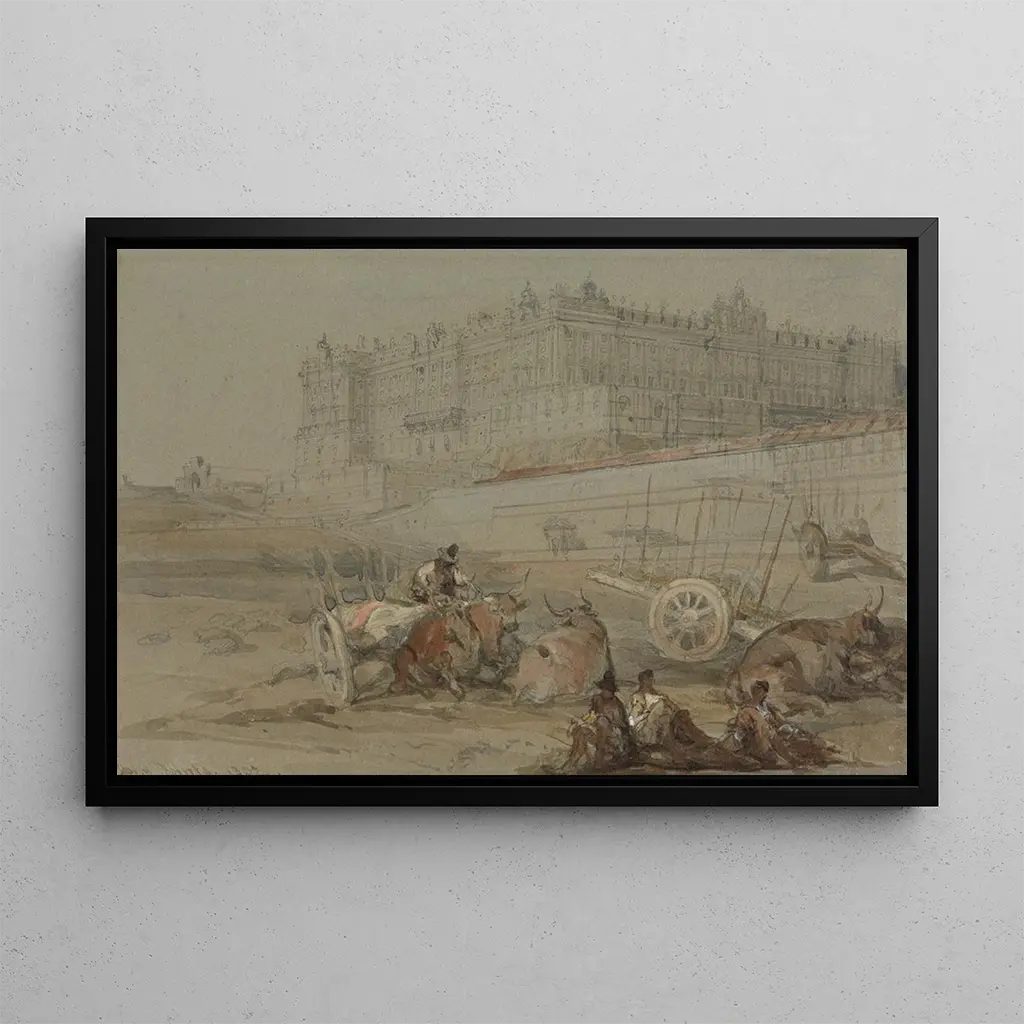 Le Palais Royal Madrid 1832 : un regard sur l'élégance architecturale. Cette œuvre de David Roberts, réalisée en 1832, nous transporte au cœur de l'architecture majestueuse du Palais Royal de Madrid. Les détails minutieux et les couleurs vibrantes capturent la grandeur de ce monument emblématique. La lumière joue un rôle essentiel, mettant en valeur les ornements et les façades, tandis que le ciel, d'un bleu profond, contraste avec les tons chauds des pierres. La composition invite à une exploration visuelle, chaque élément étant soigneusement agencé pour créer une harmonie parfaite. Cette reproduction du Palais Royal est une véritable ode à la beauté et à l'histoire, offrant une immersion dans l'art de l'époque. David Roberts : un pionnier du romantisme architectural. David Roberts, né en Écosse en 1796, est reconnu comme l'un des plus grands peintres de paysages et d'architecture du XIXe siècle. Son œuvre est marquée par un style romantique, où il combine précision et émotion. Influencé par ses voyages en Europe et au Moyen-Orient, Roberts a su capturer l'essence des lieux avec une sensibilité unique. Sa période de création, principalement dans les années 1820 et 1830, coïncide avec un intérêt croissant pour l'Orientalisme et les voyages. Cette reproduction du Palais Royal Madrid témoigne de son habileté à immortaliser des sites historiques, faisant de lui une figure incontournable de l'art britannique. Une acquisition décorative aux multiples atouts. Cette reproduction du Palais Royal Madrid est un choix idéal pour enrichir votre intérieur, que ce soit dans un salon, un bureau ou une chambre. Sa qualité d'impression et sa fidélité aux couleurs d'origine garantissent un rendu esthétique impressionnant. En intégrant ce tableau dans votre décoration, vous apportez une touche d'élégance et de culture à votre espace. L'œuvre attire le regard et suscite des conversations, tout en offrant une atmosphère apaisante grâce à ses nuances harmonieuses. Un véritable atout décoratif qui saura séduire les amateurs d'art et d'histoire.