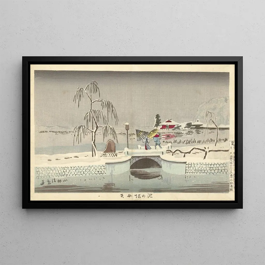 Le sanctuaire Benten à Ikenohata : une harmonie entre nature et spiritualité Le tableau "Le sanctuaire Benten à Ikenohata" de Kobayashi Kiyochika évoque une scène empreinte de sérénité et de mystère. Les couleurs vives et les détails minutieux de la toile capturent l'essence d'un sanctuaire japonais, où la nature et la spiritualité se rencontrent. Les nuances de vert et de bleu, associées à des touches de rouge, créent une atmosphère apaisante, invitant le spectateur à plonger dans cet univers sacré. La technique de Kiyochika, mêlant aquarelle et gravure, confère à l'œuvre une profondeur et une texture qui rendent hommage à la beauté des paysages nippons. Kobayashi Kiyochika : un maître du ukiyo-e moderne Kobayashi Kiyochika, actif à la fin du XIXe siècle, est un artiste majeur du mouvement ukiyo-e, qui a su allier tradition et modernité. Influencé par les techniques occidentales, il a su réinventer l'art de la gravure sur bois, créant des œuvres qui reflètent la transition du Japon vers la modernité. Son style se caractérise par des compositions dynamiques et des couleurs éclatantes, témoignant de l'importance de la nature dans la culture japonaise. Kiyochika a également joué un rôle clé dans la représentation des paysages urbains et des scènes de la vie quotidienne, faisant de lui une figure incontournable de l'histoire de l'art japonais. Une acquisition décorative aux multiples atouts La reproduction du "sanctuaire Benten à Ikenohata" est une pièce décorative qui apportera une touche d'exotisme à votre intérieur. Que ce soit dans un salon, un bureau ou une chambre, ce tableau saura captiver les regards et susciter des conversations. Sa qualité d'impression et sa fidélité aux couleurs originales garantissent un attrait esthétique indéniable. En choisissant cette toile, vous optez pour une œuvre qui non seulement embellit votre espace, mais qui invite également à la contemplation et à la rêverie, faisant de chaque instant passé devant elle une expérience unique.