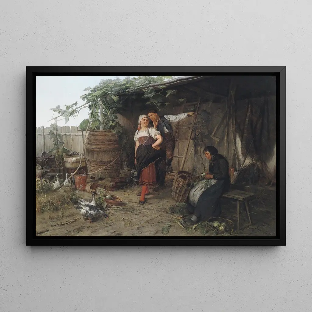 "Le secret" de Josef Kinzel est une œuvre captivante qui évoque une atmosphère de mystère et d'intimité. La composition délicate, où les personnages semblent échanger des confidences, est rehaussée par une palette de couleurs douces et chaleureuses. Kinzel maîtrise l'art de la lumière, créant des ombres qui ajoutent une profondeur émotionnelle à la scène. Chaque détail, des expressions des personnages aux textures des vêtements, contribue à l'ambiance intime de cette toile, invitant le spectateur à s'interroger sur les secrets partagés et les histoires non racontées.