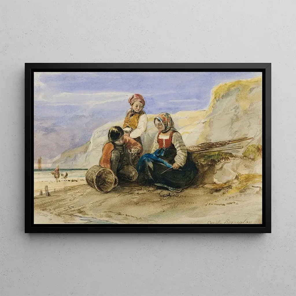 Dans Les Enfants du Pêcheur, Camille Joseph Étienne Roqueplan nous plonge dans une scène de vie quotidienne empreinte de tendresse. Les enfants, joyeux et insouciants, s'activent autour d'un pêcheur, leurs rires résonnant comme une mélodie douce. La palette de couleurs vives, dominée par des teintes de bleu et de vert, évoque la fraîcheur de la nature et la vitalité de l'enfance. La technique de Roqueplan, alliant réalisme et impressionnisme, confère à cette toile une atmosphère dynamique et chaleureuse, capturant l'essence même de la joie de vivre.