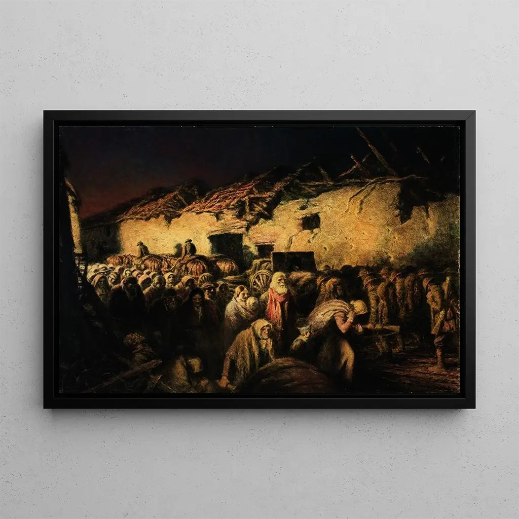 La reproduction de "Les Réfugiés" est une pièce décorative qui ne manquera pas d'attirer l'attention dans n'importe quel espace, que ce soit un salon, un bureau ou une chambre. Sa qualité d'impression et sa fidélité à l'œuvre originale garantissent une expérience visuelle enrichissante. En intégrant ce tableau dans votre décoration, vous n'apportez pas seulement une œuvre d'art, mais aussi une conversation sur des thèmes profonds et universels. L'attrait esthétique de cette toile réside dans sa capacité à susciter des émotions et à inviter à la réflexion, faisant de cette reproduction un choix idéal pour ceux qui apprécient l'art engagé.