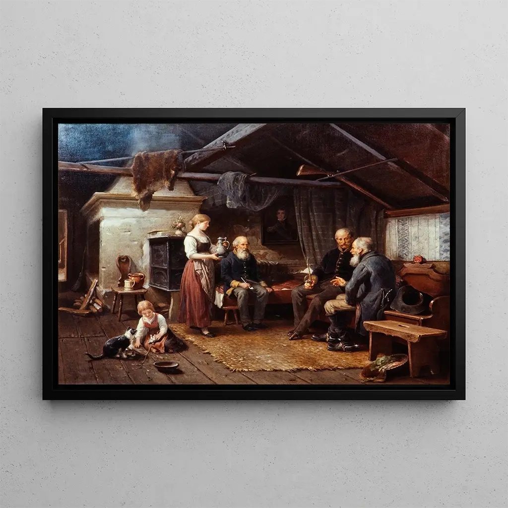 Bengt Nordenberg, peintre suédois du XIXe siècle, est reconnu pour ses œuvres qui capturent l'esprit de son époque. Influencé par le réalisme et le romantisme, il a su traduire avec finesse les émotions humaines à travers ses tableaux. Sa carrière a été marquée par un intérêt particulier pour les thèmes militaires, reflétant les bouleversements de son époque. Les Vétérans, créée en 1885, illustre parfaitement son engagement à représenter la bravoure des soldats, tout en mettant en lumière les conséquences de la guerre sur l'individu. Nordenberg a laissé un héritage artistique important, témoignant de la complexité des expériences humaines.
