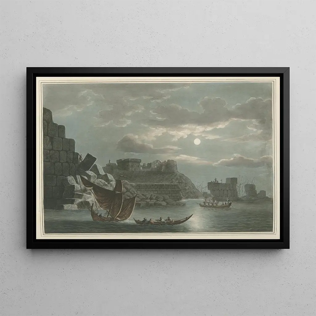 L'Île de Tortosa, œuvre emblématique de Luigi Mayer, transporte le spectateur dans un paysage enchanteur où la nature et l'architecture se rencontrent harmonieusement. Les teintes douces de bleu et de vert dominent la toile, créant une atmosphère apaisante. La technique de la peinture à l'huile permet de rendre les détails des bâtiments et des arbres avec une grande précision, tandis que la lumière joue un rôle essentiel, illuminant les éléments du tableau et apportant une dimension presque vivante à la scène. Ce tableau invite à la contemplation, offrant un aperçu d'un monde où le temps semble suspendu.
