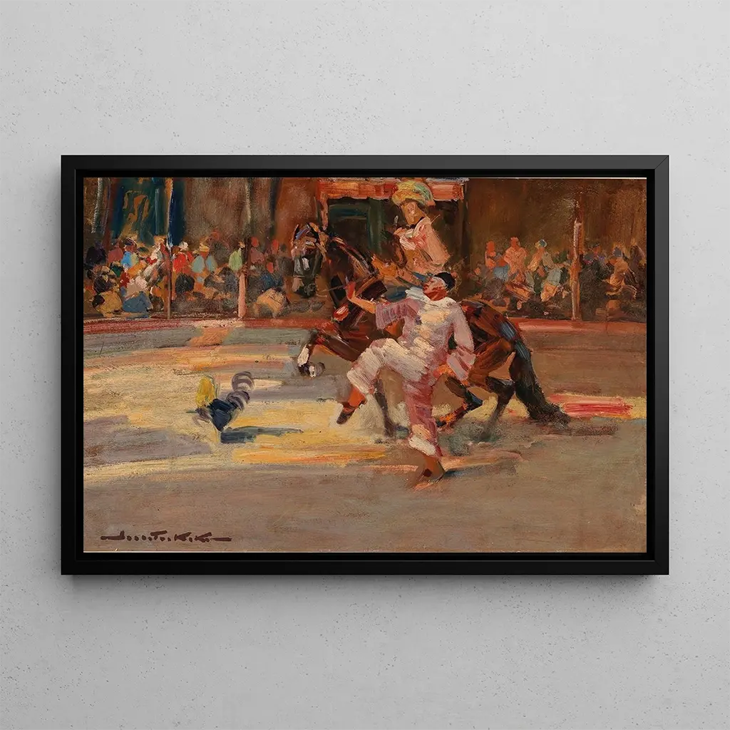 Manege de cirque : un ballet de couleurs et de mouvements La reproduction de "Manege de cirque" capte l'énergie vibrante d'un spectacle de cirque, où les couleurs éclatantes et les mouvements dynamiques se mêlent dans une danse enjouée. Les personnages, habillés de costumes flamboyants, semblent prendre vie sous le pinceau de l'artiste, évoquant la magie et l'excitation d'un moment de divertissement. La technique utilisée, riche en détails et en textures, permet de ressentir l'enthousiasme du public et l'atmosphère festive qui règne sous le chapiteau. Ce tableau est une véritable célébration de la joie et de l'émerveillement. Demeter Koko : un artiste du monde du spectacle Demeter Koko est un peintre du XXe siècle, dont l'œuvre est profondément influencée par le monde du cirque et du spectacle. Originaire d'un milieu artistique, il a su capturer l'essence même de ces performances à travers des compositions audacieuses et colorées. Son style, à la croisée du surréalisme et du réalisme, reflète une époque où le cirque était un symbole de divertissement populaire. Koko a su immortaliser des moments fugaces, offrant ainsi un aperçu de la vie des artistes de cirque et de l'effervescence de leur univers. Une acquisition décorative aux multiples atouts La reproduction de "Manege de cirque" est une pièce décorative captivante qui apportera une touche de dynamisme à n'importe quel espace. Que ce soit dans un salon, une salle de jeux ou un bureau, ce tableau attire le regard et suscite l'intérêt. Sa qualité d'impression garantit une fidélité aux couleurs et aux détails, permettant de profiter pleinement de l'œuvre. Avec son charme unique et son ambiance festive, cette toile est un choix parfait pour ceux qui souhaitent ajouter une note de joie et de créativité à leur intérieur.