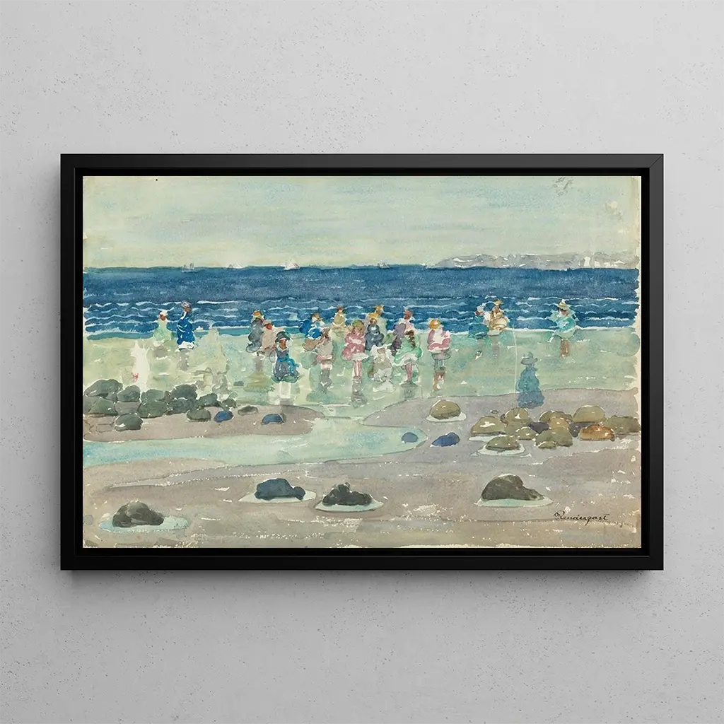 Marée basse : une danse des couleurs sur la toile La reproduction Marée basse de Maurice Prendergast est une œuvre vibrante qui capte la beauté éphémère d'un paysage maritime. Les couleurs éclatantes, allant des bleus profonds aux jaunes dorés, créent une atmosphère joyeuse et lumineuse. La technique de l'aquarelle, utilisée avec maestria, donne vie aux personnages qui se déplacent le long de la plage, évoquant une sensation de mouvement et de légèreté. Chaque coup de pinceau semble raconter une histoire, une invitation à plonger dans cet instant suspendu entre ciel et mer. Maurice Prendergast : l'éclat du post-impressionnisme Maurice Prendergast, peintre américain actif à la fin du XIXe et au début du XXe siècle, est souvent associé au mouvement post-impressionniste. Influencé par les artistes européens lors de ses voyages, il a su intégrer des éléments de lumière et de couleur qui lui sont propres. Sa carrière, marquée par une recherche constante de la beauté dans la vie quotidienne, a fait de lui une figure incontournable de l'art américain. Prendergast a su capturer l'essence des moments simples, transformant des scènes ordinaires en véritables poèmes visuels. Une acquisition décorative aux multiples atouts La reproduction de Marée basse est un choix idéal pour apporter une touche de fraîcheur à votre intérieur. Que ce soit dans un salon, un bureau ou une chambre, ce tableau évoque une atmosphère sereine et apaisante. Sa qualité d'impression garantit une fidélité remarquable aux couleurs et aux détails de l'œuvre originale, tout en offrant un attrait esthétique indéniable. En choisissant cette toile, vous optez pour une décoration qui ne manquera pas d'éveiller les sens et d'inspirer la contemplation.