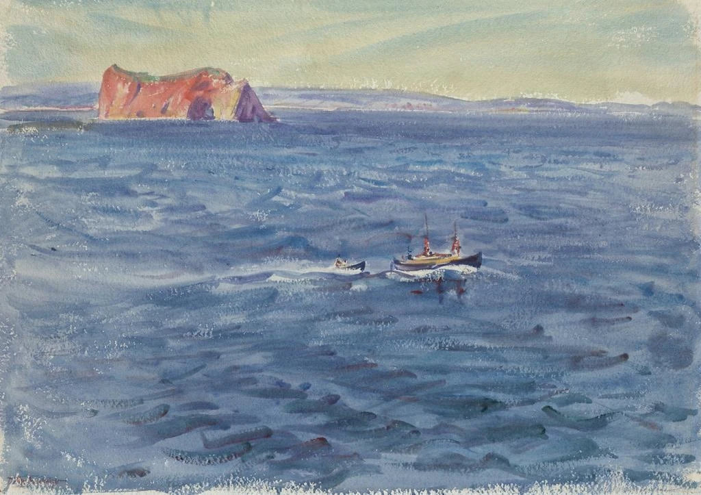 Maritim landskapsmålning med båt och klippa - Dodge MacKnight