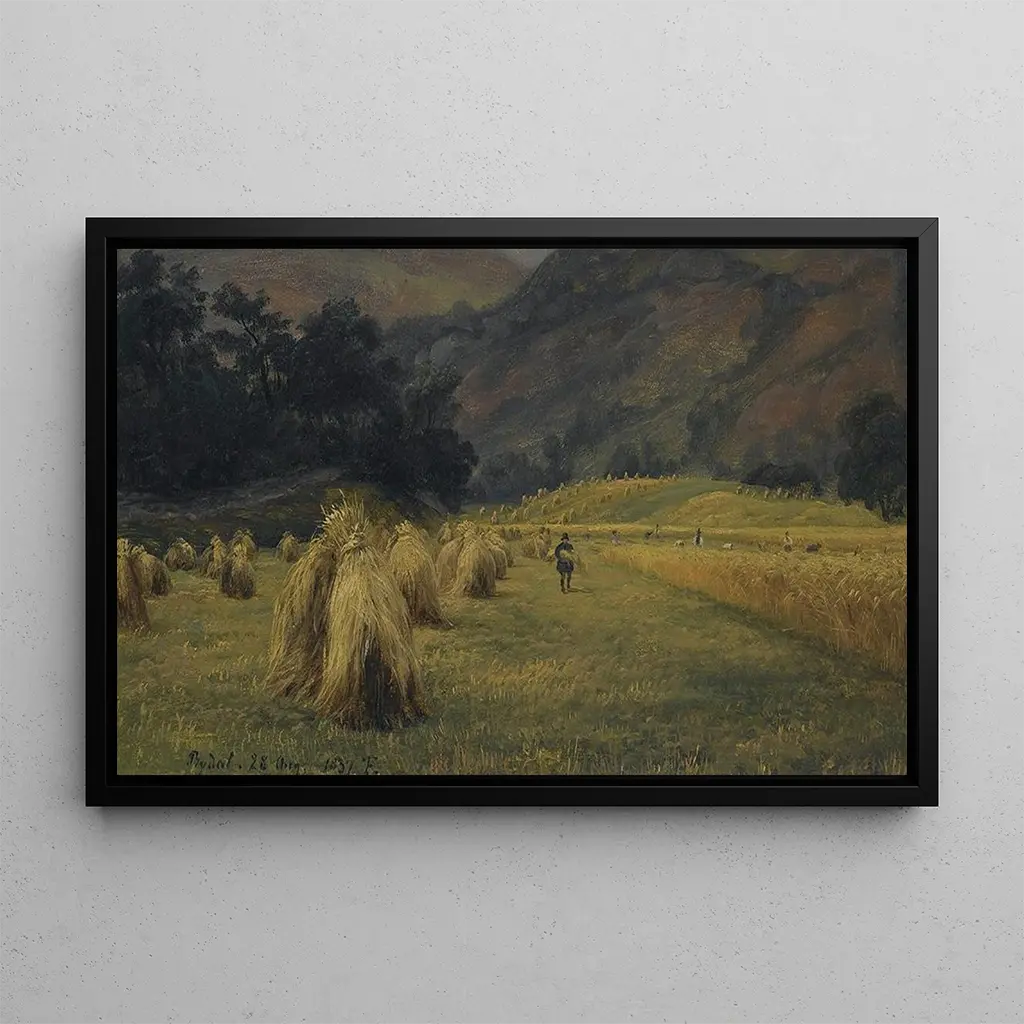Thomas Fearnley, peintre norvégien du XIXe siècle, est reconnu pour ses paysages romantiques qui célèbrent la beauté naturelle de son pays natal et au-delà. Influencé par le mouvement romantique, il a su capturer les nuances de la lumière et de l'atmosphère, rendant hommage à la nature dans toute sa splendeur. Fearnley a voyagé à travers l'Europe, s'inspirant des paysages anglais et italiens, ce qui a enrichi son style. Sa contribution à l'art paysager est indéniable, et ses œuvres continuent d'inspirer les artistes contemporains. Meules de foin Rydal Cumbria est un exemple parfait de son talent, mêlant réalisme et poésie.