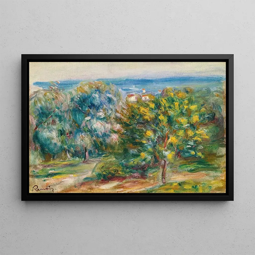 La konsttryck d'Esquisse de paysage du Midi de Pierre-Auguste Renoir capture l'essence vibrante du sud de la France. Les touches de couleur lumineuses et les jeux d'ombre et de lumière créent une atmosphère joyeuse et vivante, typique de la période impressionniste. Renoir, avec sa technique de peinture en plein air, parvient à immortaliser les nuances subtiles de la nature, des collines ondulantes aux arbres luxuriants. Cette œuvre, bien que sous forme d'esquisse, révèle déjà le talent exceptionnel de l'artiste à saisir la beauté fugace des paysages, invitant le spectateur à ressentir la chaleur et la lumière de cette région enchanteresse.