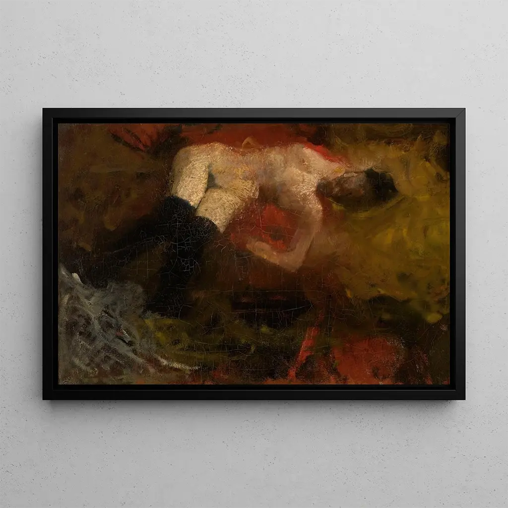 Dans cette reproduction du tableau Nu de George Hendrik Breitner, la sensualité et la délicatesse se rencontrent dans une composition harmonieuse. Les courbes du corps féminin sont mises en valeur par des couleurs chaudes et des nuances subtiles, créant une atmosphère intimiste et contemplative. La technique de l'artiste, qui mêle habilement le réalisme à une touche impressionniste, permet de ressentir la texture de la peau et la lumière qui joue sur le corps. Chaque détail, du drapé des tissus à l'expression du modèle, invite le spectateur à plonger dans un moment de pure beauté.