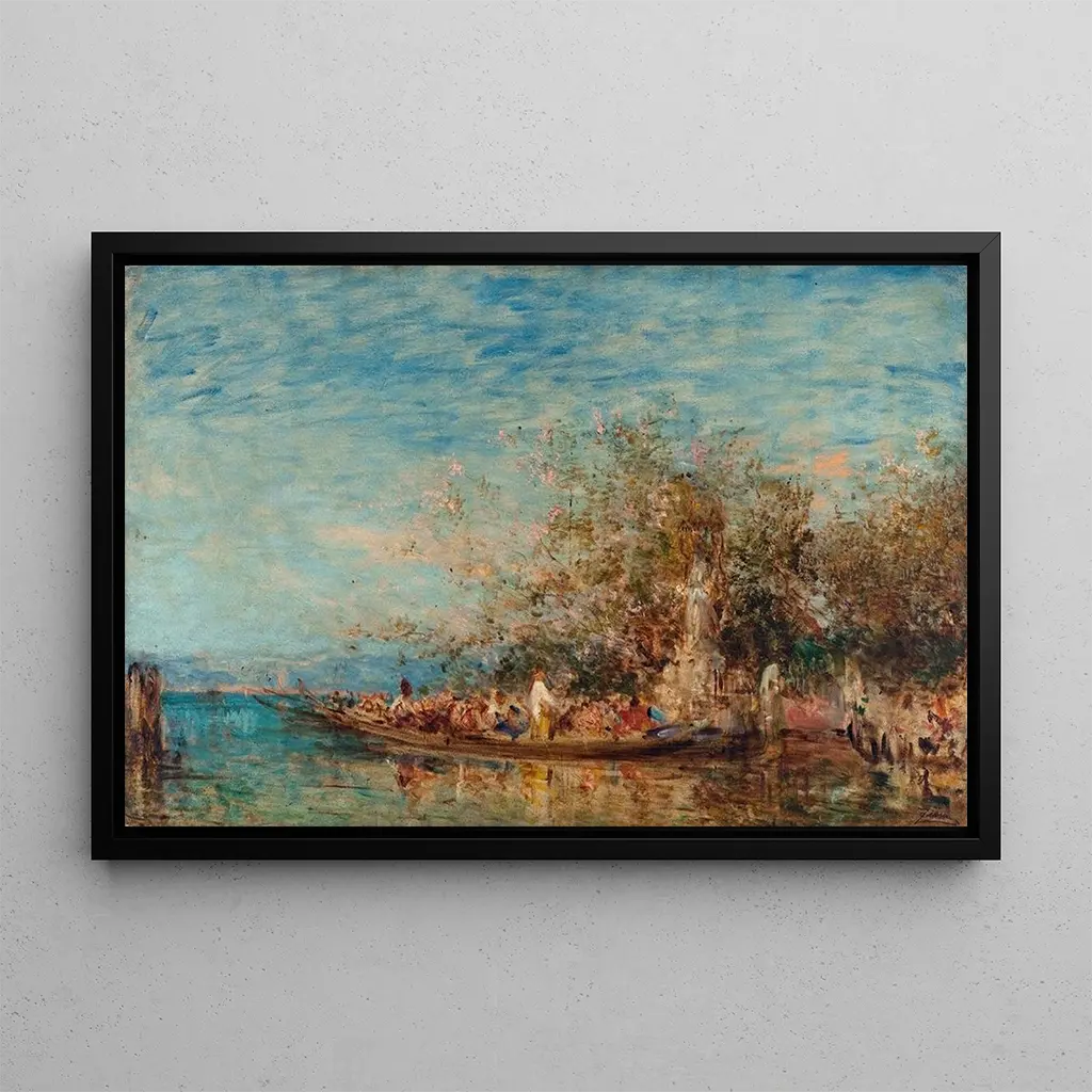 Konsttrycket av L'Offrande à la Madone av Félix Ziem framkallar en scen fylld av andlighet och skönhet. Detta konsttryck, rikt på färger och detaljer, föreställer ett offer till Jungfru Maria, omgiven av ett förtrollande landskap. De livfulla nyanser av blått och guld, kombinerat med den delikata gestaltningen av människorna, skapar en atmosfär av frid och eftertanke. Ziem, med sin oöverträffade talang, lyckas förmedla en djup känsla genom detta verk, inbjudande betraktaren att fördjupa sig i ett ögonblick av nåd och fromhet.