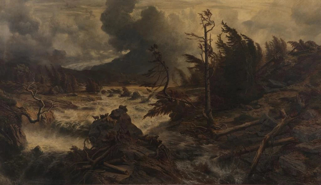 Albert Zimmermann, verksam under 1800-talet, är erkänd för sina romantiska landskap som fångar storheten hos bergen och åskvädret. Påverkad av den romantiska rörelsen strävar han efter att uttrycka mänskliga känslor genom naturen. Hans verk, ofta inspirerade av Alperna, speglar en fascination för naturens element och extrema väderförhållanden. Zimmermann utmärkte sig genom sin förmåga att återge stormarnas intensitet och de soliga landskapens lugn, vilket gör honom till en viktig figur inom landskapskonsten under sin tid. Hans arv lever vidare och inspirerar många samtida konstnärer att utforska relationen mellan människa och natur.