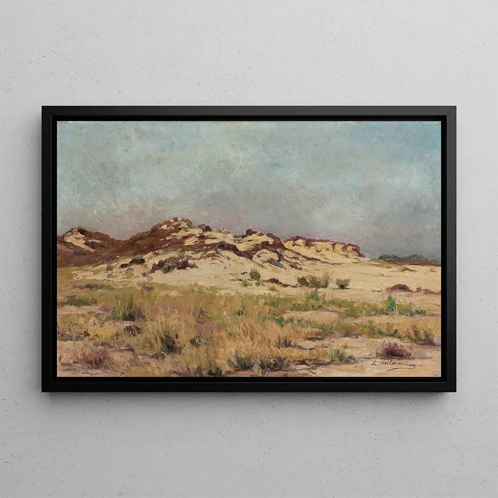 Le tableau "Paysage avec des dunes de sable" de Leon Delderenne transporte le spectateur dans un univers où la nature se dévoile dans toute sa splendeur. Les dunes, sculptées par le vent, se dessinent avec des nuances de beige et d'or, créant un contraste saisissant avec le ciel azur. La technique de l'artiste, qui mêle habilement le réalisme à une touche impressionniste, confère à l'œuvre une atmosphère sereine et contemplative. Les ombres et lumières jouent sur les formes, invitant à une réflexion sur la beauté éphémère des paysages naturels.
