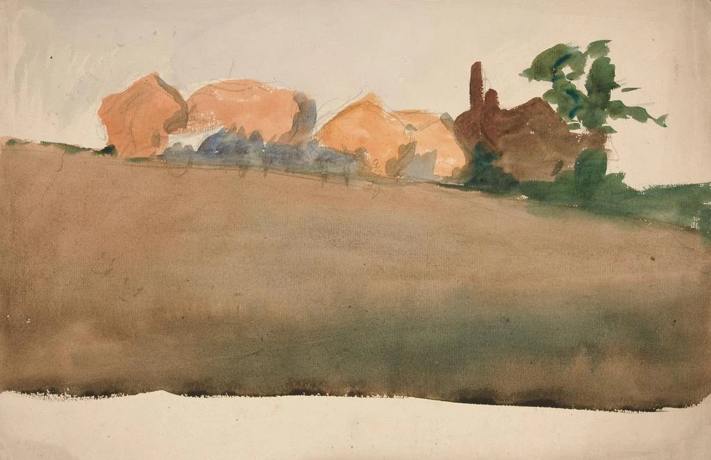 Paysage avec maisons au loin - Edwin Austin Abbey