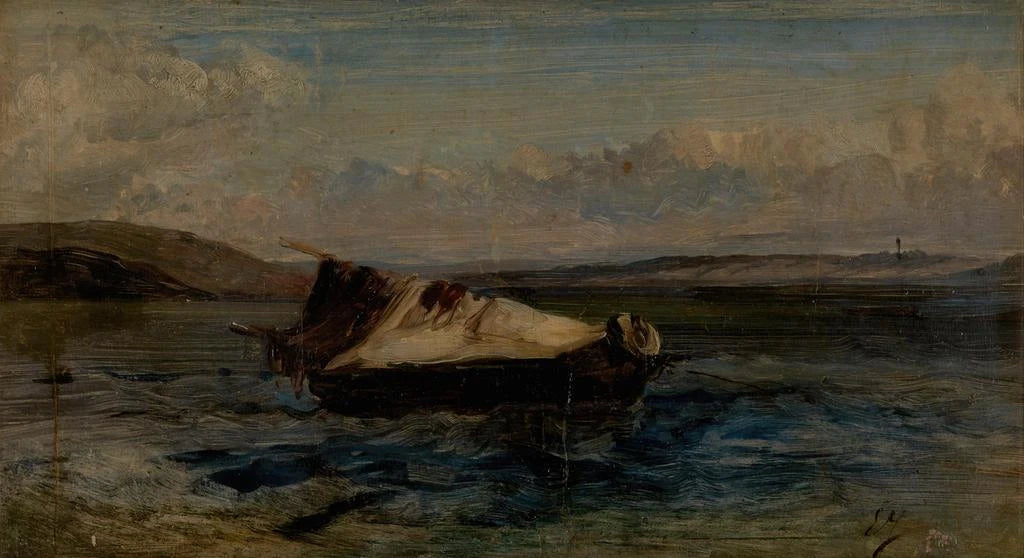 "Petit bateau" d'Eugène Isabey évoque la tranquillité d'une scène maritime, où un petit voilier glisse paisiblement sur des eaux calmes. La composition se distingue par ses teintes douces et apaisantes, mêlant des nuances de bleu et de vert qui rappellent la mer. Isabey, avec sa maîtrise des reflets et des lumières, parvient à créer une atmosphère sereine et contemplative. Chaque coup de pinceau semble capturer le mouvement léger des vagues, invitant le spectateur à ressentir la brise marine et la douceur d’un moment suspendu.