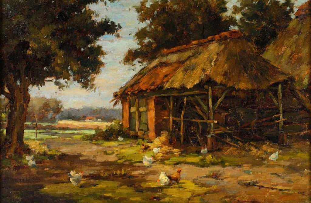 Poules devant une Grange - Karl Ludwig Prinz