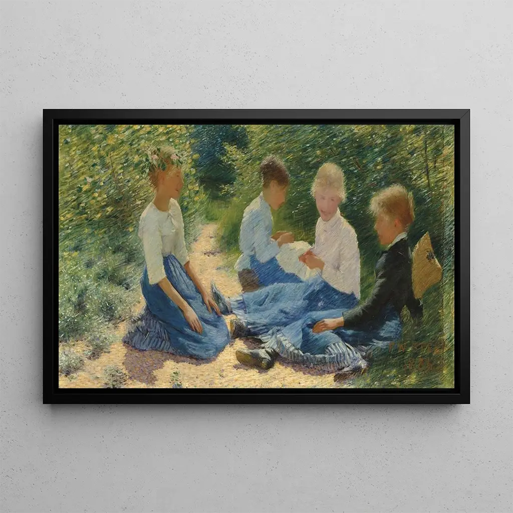 Konsttrycket av "Bavards" fördjupar oss i en livfull scen där karaktärer utbyter ord med livlighet. Philip Wilson Steer, med sin unika stil, fångar essensen av mänskliga interaktioner genom dynamiska penseldrag och vibrerande färger. De uttrycksfulla ansiktena och de talande gesterna hos protagonisterna skapar en varm och vänlig atmosfär. Ljuset spelar en avgörande roll i detta verk, belyser detaljer och förstärker karaktärernas känslor. Detta konsttryck är en sann hyllning till det sociala livet, och bjuder in betraktaren att delta i denna livliga konversation.