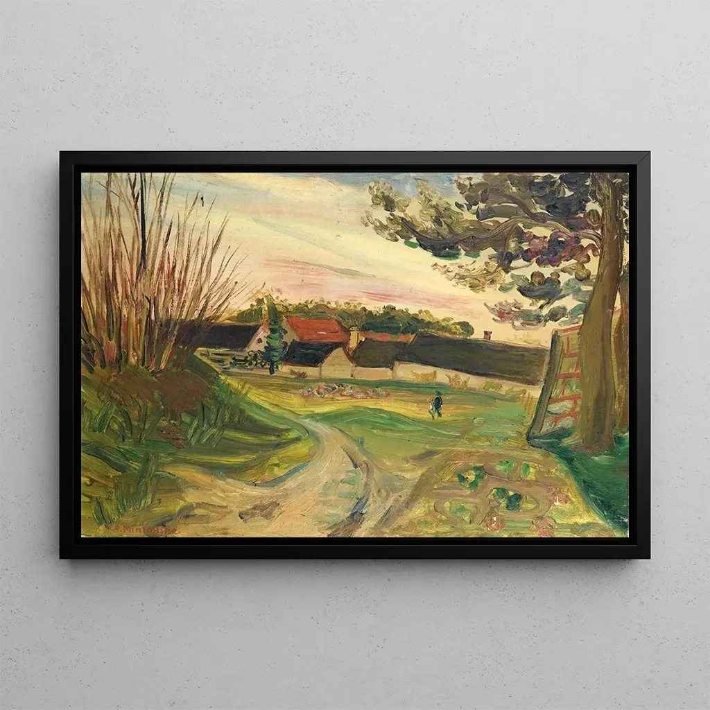 Promeneurs devant une ferme : une scène bucolique empreinte de sérénité La reproduction du tableau Promeneurs devant une ferme d'Abraham Mintchine évoque une atmosphère paisible et nostalgique. Dans cette œuvre, Mintchine dépeint une scène champêtre où des personnages se promènent tranquillement devant une ferme, entourés de la nature verdoyante. Les couleurs douces et les nuances délicates créent une harmonie visuelle qui invite à la contemplation. Les détails minutieux des arbres et de la structure de la ferme témoignent du talent de l'artiste pour capturer la beauté des paysages ruraux. Cette toile évoque un retour à la simplicité et à la tranquillité, loin du tumulte de la vie urbaine. Abraham Mintchine : un artiste entre tradition et modernité Abraham Mintchine, peintre d'origine russe, a su s'imposer sur la scène artistique au début du XXe siècle. Son style, influencé par le post-impressionnisme, se caractérise par une approche sensible des paysages et des scènes de la vie quotidienne. Mintchine a souvent exploré les thèmes de la nature et de la ruralité, cherchant à exprimer la beauté des moments simples. Promeneurs devant une ferme illustre parfaitement cette quête d'authenticité et de connexion avec le monde naturel. Son œuvre reflète une époque où l'art se libérait des conventions, tout en restant ancré dans des valeurs esthétiques profondes. Une acquisition décorative aux multiples atouts Choisir une reproduction du tableau Promeneurs devant une ferme, c'est ajouter une touche de sérénité à votre espace de vie. Que ce soit dans un salon, un bureau ou une chambre, cette toile évoque la paix et la beauté de la nature, créant une atmosphère apaisante. La qualité de la reproduction assure une fidélité aux couleurs et aux détails de l'œuvre originale, permettant d'apprécier pleinement le talent d'Abraham Mintchine. Avec son attrait esthétique, cette œuvre devient un élément central de votre décoration, invitant à la rêverie et à l'évasion dans un monde bucolique.