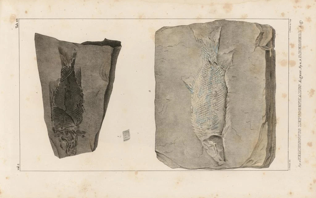 Recherches sur les poissons fossiles Pl168 : un voyage dans le temps La toile "Recherches sur les poissons fossiles Pl168" de Louis Agassiz nous plonge dans un univers scientifique fascinant. Cette œuvre, riche en détails, illustre des spécimens de poissons fossiles avec une précision remarquable. Les teintes terreuses et les nuances délicates des poissons sont mises en valeur par un fond sobre, permettant de concentrer l’attention sur les formes et les textures. Agassiz, en tant que naturaliste, parvient à allier art et science, offrant une vision unique de la paléontologie à travers son regard artistique. Louis Agassiz : un pionnier de la paléontologie Louis Agassiz, scientifique du XIXe siècle, est célèbre pour ses contributions à la biologie et à la paléontologie. Né en Suisse, il a émigré aux États-Unis où il a poursuivi ses recherches sur les poissons fossiles, devenant ainsi une figure emblématique de la science de son époque. Son approche novatrice et ses découvertes ont marqué un tournant dans la compréhension de l'évolution des espèces. À travers ses œuvres, Agassiz a su transmettre sa passion pour la nature, mêlant rigueur scientifique et sensibilité artistique, ce qui lui a permis de laisser un héritage durable dans le monde de l'art et de la science. Une acquisition décorative aux multiples atouts La reproduction de "Recherches sur les poissons fossiles Pl168" est un ajout captivant à toute collection d'art. Que ce soit dans un bureau, une bibliothèque ou un espace d'étude, cette toile apportera une touche d'érudition et d'esthétique. Sa qualité d'impression garantit une fidélité aux détails de l'œuvre originale, tout en offrant un attrait visuel qui suscite la curiosité. En intégrant cette reproduction dans votre décoration, vous créez un environnement inspirant, propice à la réflexion et à l'échange d'idées, tout en rendant hommage à l'un des grands esprits scientifiques du XIXe siècle.