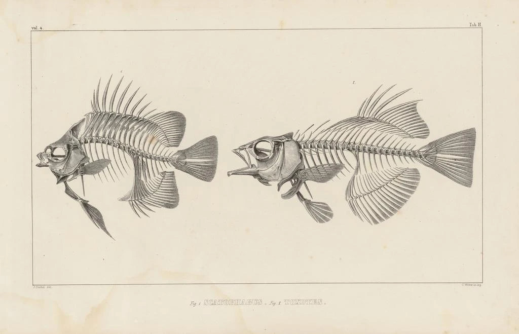 La toile "Recherches sur les poissons fossiles Pl343" de Louis Agassiz est une œuvre fascinante qui illustre la beauté des formes aquatiques disparues. Avec des détails minutieux et une palette de couleurs douces, cette reproduction met en lumière la diversité des espèces marines qui peuplaient autrefois nos océans. La technique de gravure, associée à un savoir-faire scientifique, permet de capturer la complexité des structures osseuses et des textures des poissons fossiles. Cette œuvre est une véritable invitation à explorer les mystères de l’évolution et à apprécier la richesse de la biodiversité passée.