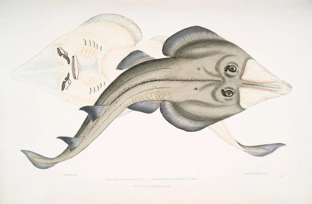 Rhinobate armé indien : ett blick på exotisk fauna Konsttrycket Rhinobate armé indien, utfört av John Edward Gray, är en fascinerande skildring av denna unika fisk. De jordnära nyanserna och gröna tonerna blandas för att skapa ett slående porträtt av detta vattenlevande djur. Detaljernas precision, från fjäll till fenor, vittnar om en noggrann observation av naturen. Atmosfären i verket framkallar både majestät och sårbarhet i faunan, vilket får oss att reflektera över biologisk mångfald. Varje element i kompositionen tycks vibrera av ett eget liv, vilket gör detta konsttryck fängslande och karaktärsfullt. John Edward Gray : en naturalist i tjänst för konsten John Edward Gray, zoolog och konstnär från 1800-talet, spelade en avgörande roll i studiet och klassificeringen av djurarter. Hans arbete präglades av en passion för faunan, och han samarbetade ofta med illustratörer för att ge liv åt sina upptäckter. Gray bidrog till förståelsen av exotiska arter, och hans verk har blivit referenser inom naturalistisk konst. Genom att lyfta fram ofta okända varelser, lyckades han väcka allmänhetens intresse för den biologiska mångfalden. En dekorativ tillgång med många fördelar Konsttrycket av Rhinobate armé indien är ett djärvt dekorativt val som kommer att berika ditt utrymme. Oavsett om det är i ett kontor, ett vardagsrum eller ett sovrum, tillför denna duk en touch av exotism och elegans. Dess utskriftskvalitet garanterar en enastående trohet mot detaljer och färger i originalverket, vilket möjliggör full uppskattning av dess estetiska charm. Genom att välja detta konsttryck tillför du ett unikt inslag till din inredning, som väcker nyfikenhet och beundran hos dina gäster.