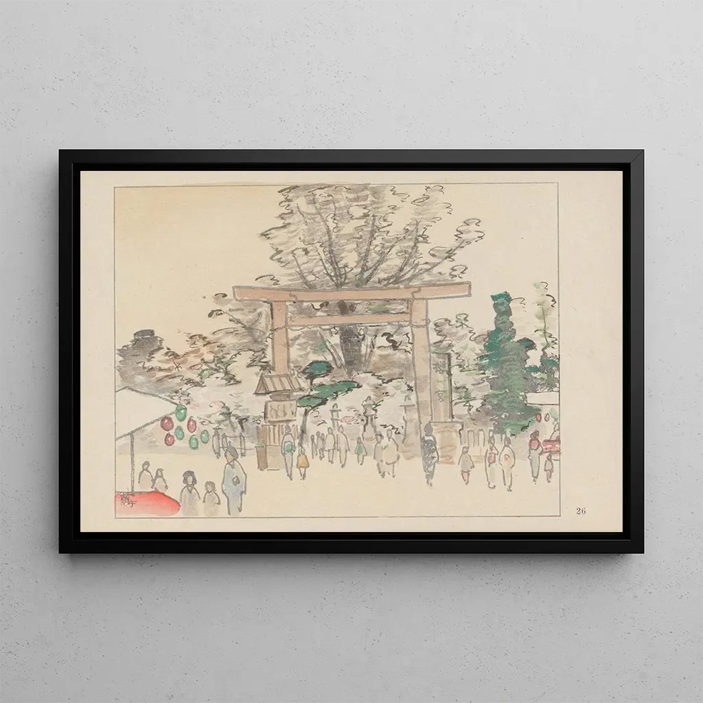 Sakuranomiya, le lieu d'attraction des cerisiers : une danse florale sous le ciel japonais Dans cette reproduction de Sakuranomiya, Akamatsu Rinsaku capture la beauté éphémère des cerisiers en fleurs, symbole de la culture japonaise. Les teintes délicates de rose et de blanc se mêlent harmonieusement, créant une atmosphère douce et rêveuse. La technique de l'artiste, qui utilise des coups de pinceau fluides, donne vie aux pétales qui semblent presque flotter dans l'air. Le paysage est baigné d'une lumière dorée, évoquant la sérénité d'un printemps japonais. Chaque détail, des branches délicates aux reflets sur l'eau, invite à une contemplation paisible, transportant le spectateur au cœur de cette scène idyllique. Akamatsu Rinsaku : un maître du paysage japonais Akamatsu Rinsaku est un artiste japonais du début du XXe siècle, connu pour ses paysages poétiques et ses représentations de la nature. Influencé par les traditions artistiques japonaises, il s'inscrit dans un mouvement qui valorise la beauté des saisons et des éléments naturels. Ses œuvres, souvent inspirées par des lieux emblématiques du Japon, témoignent d'une profonde connexion avec son environnement. Rinsaku a su allier techniques traditionnelles et sensibilité moderne, faisant de lui une figure importante de l'art paysager japonais. Son travail, bien que moins connu à l'international, est apprécié pour sa capacité à évoquer des émotions et à célébrer la beauté fugace de la nature. Une acquisition décorative aux multiples atouts Cette reproduction de Sakuranomiya est une pièce décorative idéale pour apporter une touche de sérénité à votre intérieur. Que ce soit dans un salon, un bureau ou une chambre, ce tableau évoque la paix et la beauté de la nature, créant une atmosphère apaisante. La qualité de la reproduction garantit une fidélité aux couleurs et aux détails de l'œuvre originale, permettant de profiter pleinement de l'esthétique raffinée d'Akamatsu Rinsaku. Avec son attrait visuel, cette toile s'intègre parfaitement dans divers styles de décoration, ajoutant une note d'élégance et de culture à votre espace de vie.