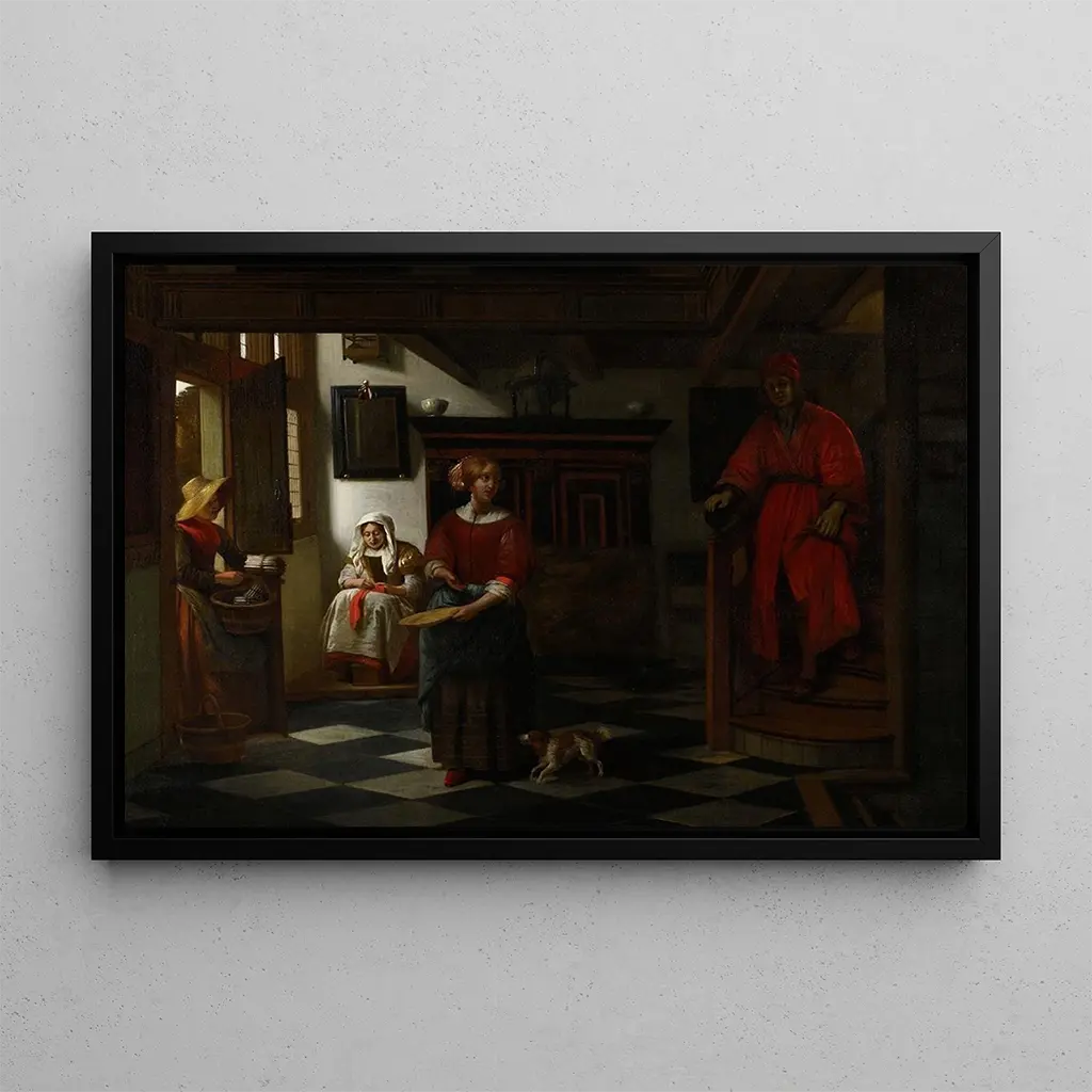 Pieter de Hooch, actif au XVIIe siècle, est reconnu pour ses scènes de la vie quotidienne, souvent empreintes d'une tranquillité et d'une intimité remarquables. Influencé par des contemporains comme Vermeer, Hooch se distingue par sa capacité à jouer avec la lumière et l'espace. Ses œuvres, souvent centrées sur des intérieurs et des interactions humaines, témoignent d'une époque où le réalisme et la représentation de la vie domestique prenaient une place prépondérante dans l'art néerlandais. Hooch a su capturer l'essence de la vie bourgeoise, faisant de lui un artiste incontournable de son époque.