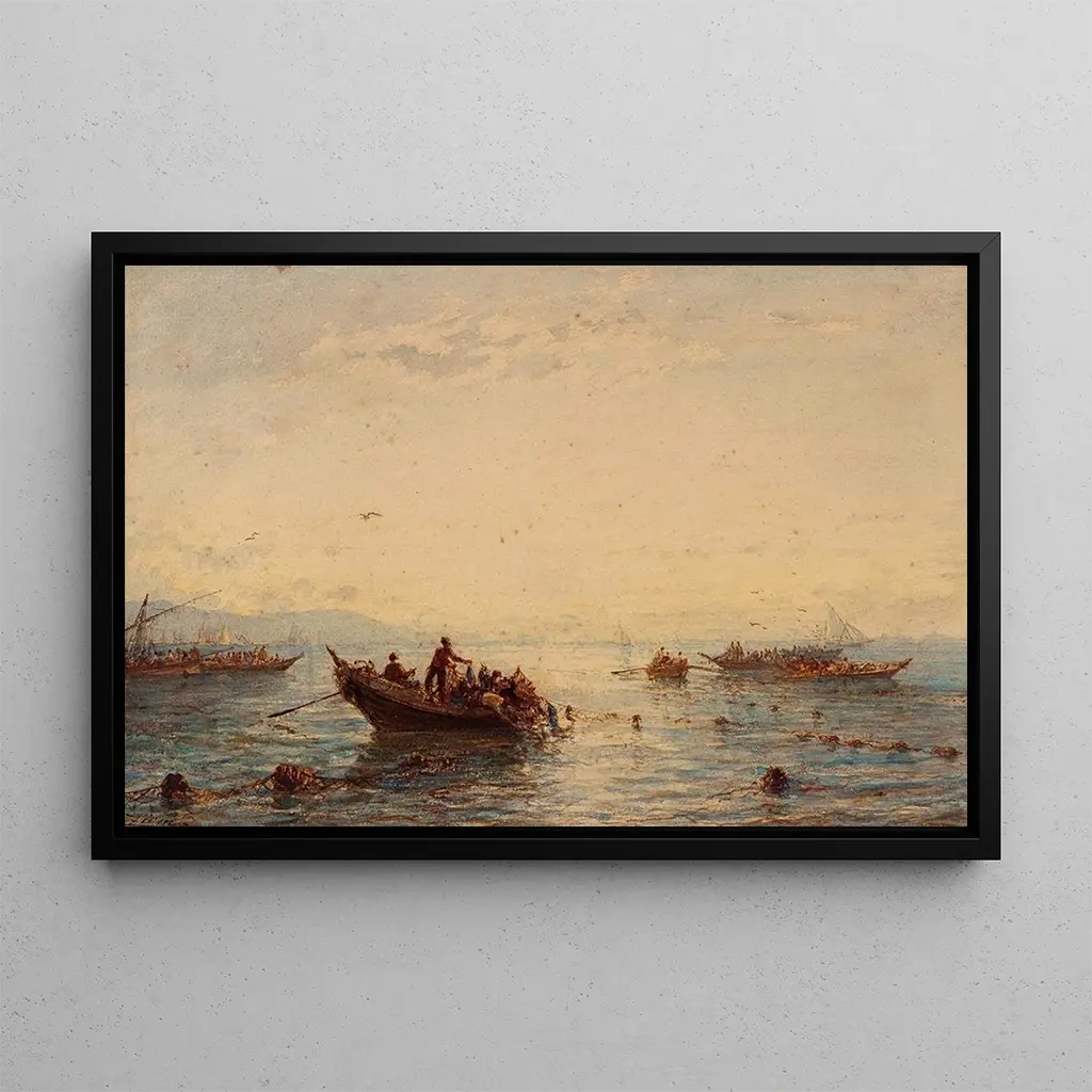 Sausset, la pêche au thon : une scène maritime empreinte de sérénité La reproduction Sausset, la pêche au thon, nous transporte sur les rivages ensoleillés de la Méditerranée, où la mer et le ciel se confondent dans une palette de bleus et de blancs. Les bateaux de pêche, délicatement peints, semblent danser sur les vagues, tandis que les pêcheurs s'affairent avec une grâce naturelle. La technique impressionniste de Félix Ziem, avec ses coups de pinceau fluides, crée une atmosphère de tranquillité et d'harmonie, invitant le spectateur à ressentir la douceur de vivre au bord de l'eau. Félix Ziem : un maître de la lumière et de la couleur au XIXe siècle Félix Ziem, artiste français du XIXe siècle, est reconnu pour ses paysages marins et ses vues de Venise. Influencé par le mouvement impressionniste, il a su capturer la lumière et l'atmosphère de ses sujets avec une grande sensibilité. Sa carrière, marquée par des voyages à travers l'Europe et au-delà, lui a permis d'explorer diverses techniques et styles. La reproduction de Sausset, la pêche au thon, témoigne de son talent à immortaliser des moments simples de la vie quotidienne, tout en célébrant la beauté des paysages marins. Une acquisition décorative aux multiples atouts Cette reproduction du tableau Sausset, la pêche au thon, est une pièce décorative qui s'intègre parfaitement dans n'importe quel intérieur, qu'il soit moderne ou traditionnel. Son attrait esthétique et sa qualité d'impression en font un choix idéal pour embellir un salon, un bureau ou une chambre. En apportant une touche de sérénité et d'évasion, cette œuvre invite à la contemplation et à l'appréciation de la beauté des scènes de la vie maritime, tout en enrichissant votre espace de vie d'une atmosphère apaisante.