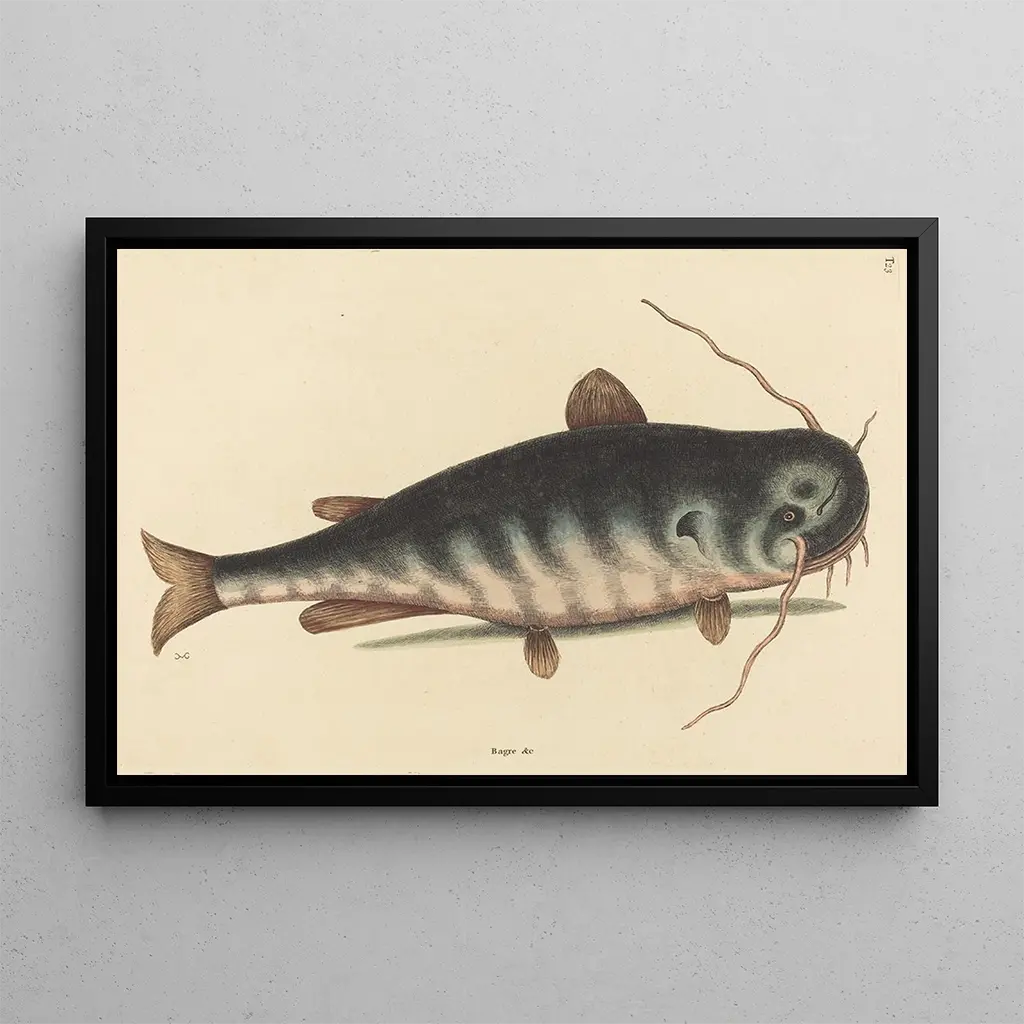 Den konsttryck av "Le Poisson-Chat Silurus catus" av Mark Catesby ger oss en fängslande inblick i det vattenlevande livet. Detta konsttryck framhäver kattfisken, med sina flytande former och delikata färger, i en naturlig miljö rik på detaljer. Catesby, som naturalistisk illustratör, utmärker sig i den precisa återgivningen av arter, och detta verk är inget undantag. Atmosfären som avtecknar sig i detta konsttryck är både lugn och fascinerande, inbjudande betraktaren att utforska naturens djup.