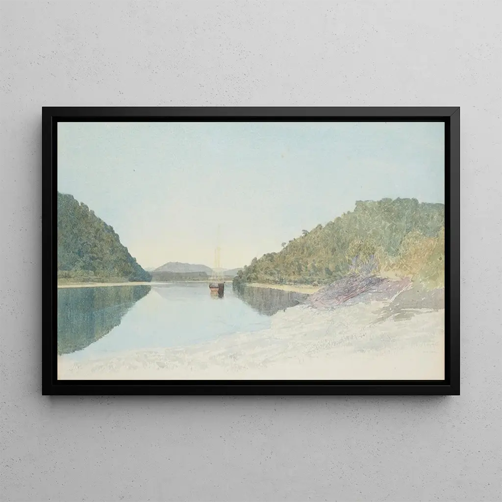 I "Site de Greymouth" ger James Crowe Richmond oss en slående vy av den nyzeeländska naturen, där majestätiska berg möter de lugna vattnen i en hamn. Den mjuka färgpaletten, dominerad av lugnande gröna och djupa blå nyanser, framkallar en atmosfär av stillhet och eftertanke. Richmond, med sin noggranna teknik, lyckas fånga det naturliga ljuset och skapa en nästan drömlik stämning. Detaljerna av flytande moln och reflektioner på vattnet tillför en extra dimension till detta konsttryck, och bjuder in betraktaren att fördjupa sig i detta förtrollande landskap.