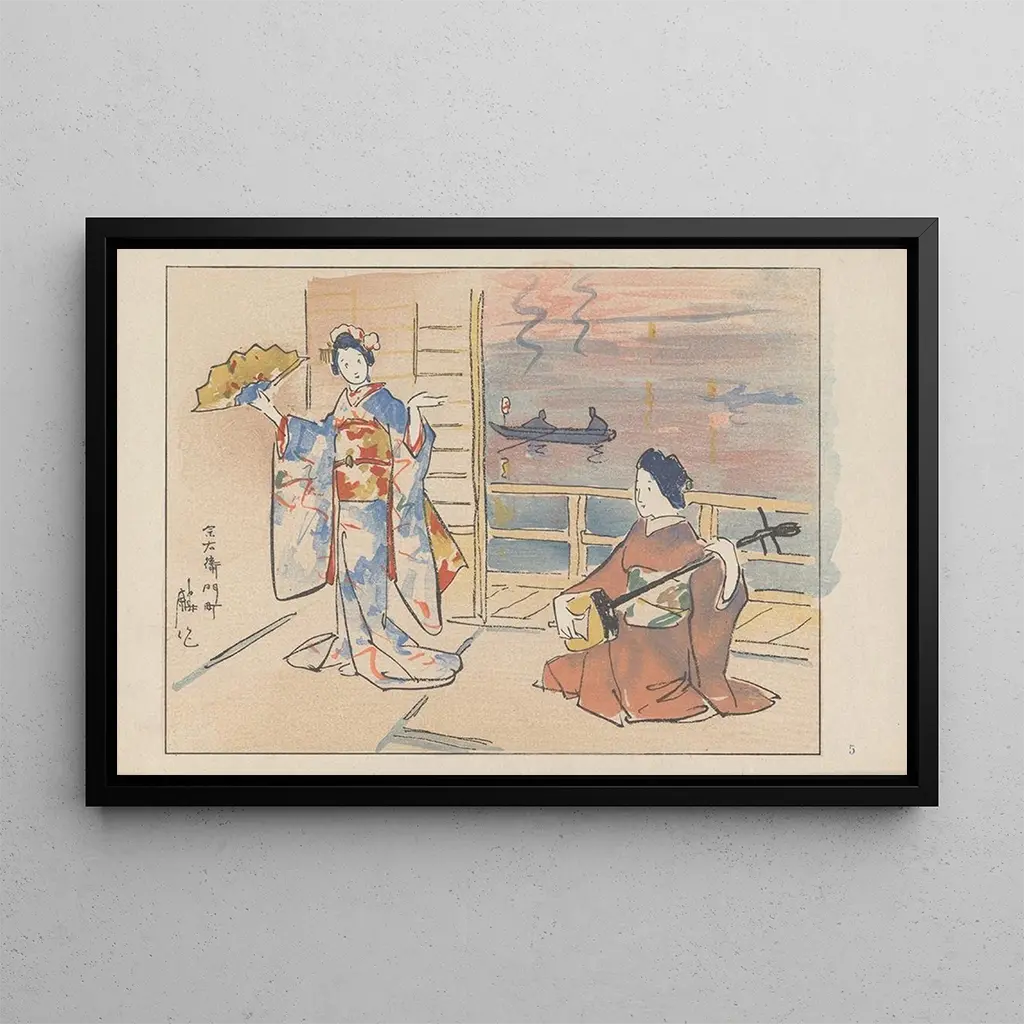 Soemoncho, le quartier gai : une immersion dans la vie urbaine japonaise La reproduction de Soemoncho, le quartier gai, d'Akamatsu Rinsaku, nous transporte dans un monde vibrant et animé. Cette toile, riche en couleurs et en détails, capture l'essence de la vie nocturne à Osaka au début du XXe siècle. Les teintes chaudes et lumineuses, mêlées à des ombres délicates, créent une atmosphère à la fois festive et nostalgique. Les personnages, habillés de kimonos traditionnels, se mêlent dans une danse de vie et de mouvement, tandis que les lanternes illuminent la scène, ajoutant une touche de magie à ce tableau captivant. Akamatsu Rinsaku : un témoin de l'ère Meiji Akamatsu Rinsaku, artiste japonais du début de l'ère Meiji, est reconnu pour sa capacité à allier tradition et modernité. Influencé par les courants artistiques occidentaux tout en restant ancré dans son héritage culturel, il a su capturer la transformation de la société japonaise. Sa carrière, marquée par une exploration des thèmes urbains et des scènes de la vie quotidienne, a contribué à faire de lui une figure emblématique de son époque. Rinsaku a su immortaliser des moments fugaces, comme ceux de Soemoncho, qui témoignent de l'évolution des mœurs et des styles de vie au Japon. Une acquisition décorative aux multiples atouts La reproduction de Soemoncho, le quartier gai, constitue une pièce décorative idéale pour divers espaces tels que le salon, le bureau ou la chambre. Sa qualité d'impression et sa fidélité aux détails originaux en font un choix attrayant pour les amateurs d'art et de culture japonaise. En intégrant ce tableau dans votre décoration, vous apportez une touche d'exotisme et d'élégance à votre intérieur. Son attrait esthétique et sa capacité à susciter des conversations en font un élément central de votre décoration, tout en vous permettant de profiter d'une œuvre d'art chargée d'histoire et de charme.
