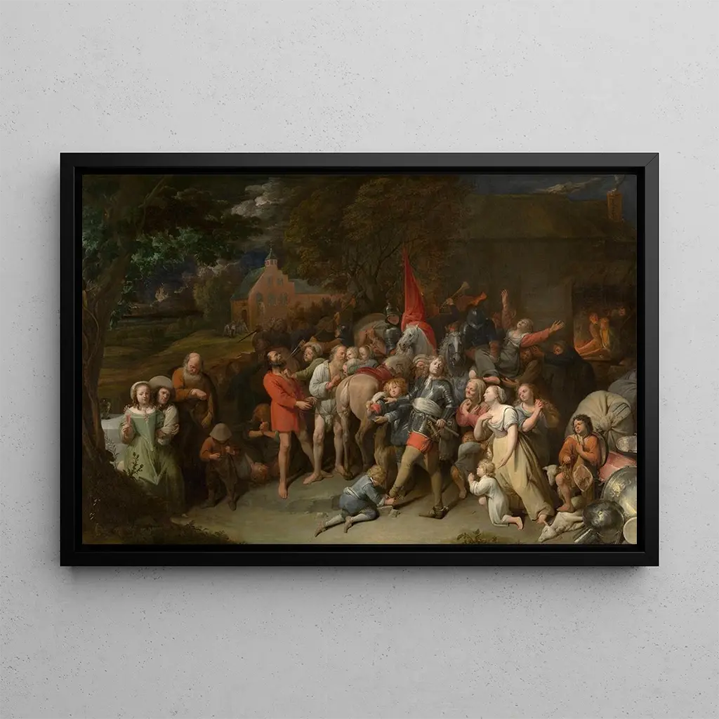 La reproduction du tableau "Soldats pillards" est un choix audacieux pour quiconque souhaite enrichir son intérieur d'une œuvre chargée d'histoire et d'émotion. Que ce soit dans un salon, un bureau ou une chambre, cette toile attire le regard et suscite des conversations. Sa qualité d'impression assure une fidélité remarquable aux détails de l'œuvre originale, permettant de ressentir toute la puissance de la scène. En intégrant cette pièce à votre décoration, vous apportez non seulement une touche artistique, mais également une réflexion sur les enjeux de la guerre et de la paix, rendant votre espace à la fois esthétique et significatif.