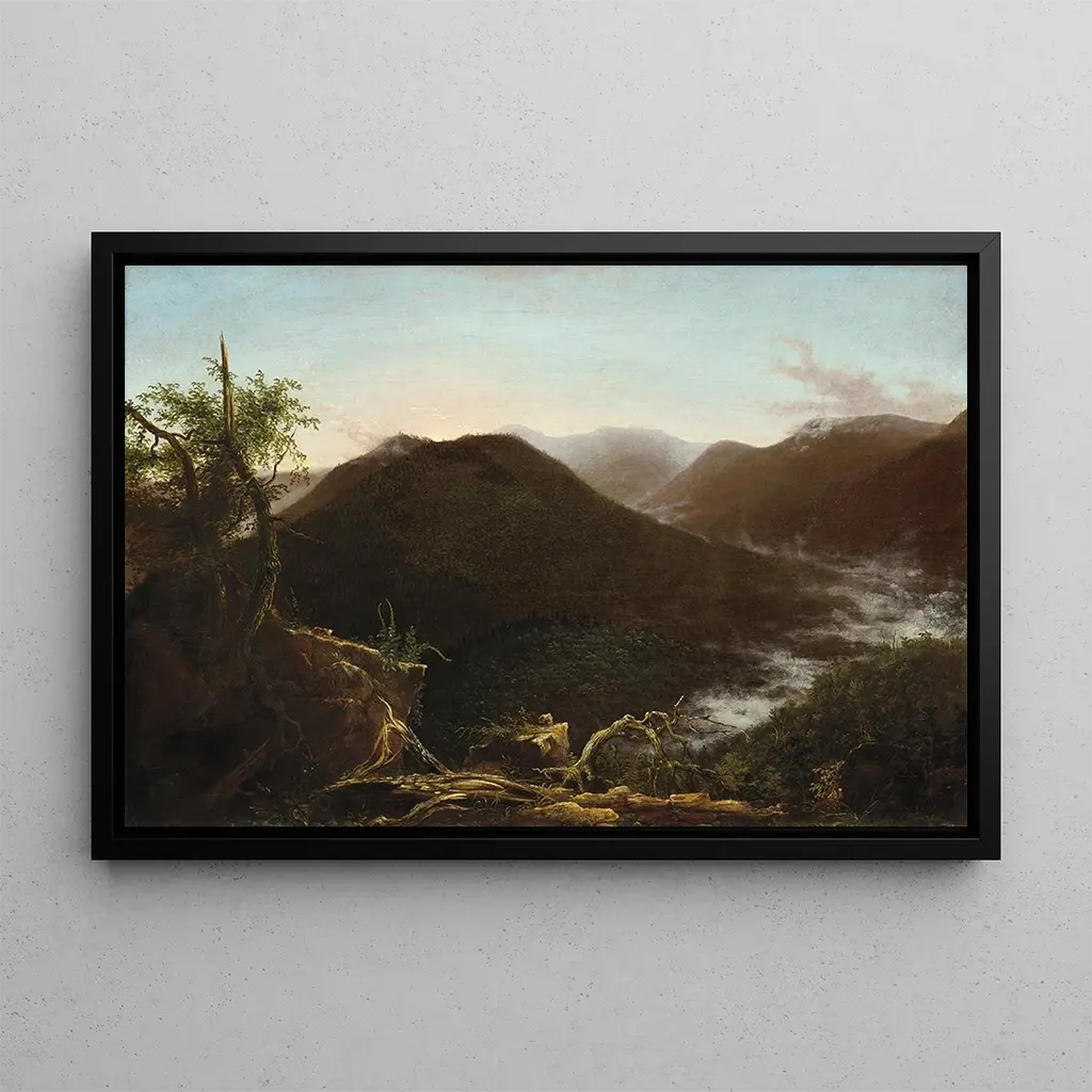 Thomas Cole, né en 1801 en Angleterre, est considéré comme le fondateur de l'école de Hudson River, un mouvement artistique qui célèbre les paysages américains. Influencé par le romantisme européen, Cole a su capturer la grandeur des paysages naturels tout en intégrant des thèmes spirituels et moraux. Son œuvre, souvent empreinte de symbolisme, reflète une profonde connexion avec la nature et une préoccupation pour la préservation de l'environnement. "Lever de soleil dans les Catskills" est l'une de ses œuvres les plus célèbres, réalisée en 1826, et témoigne de son talent pour représenter la lumière et l'atmosphère, tout en influençant de nombreux artistes de son époque.