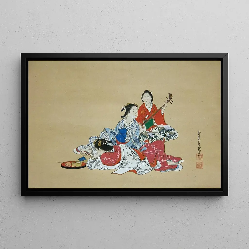Trois Beautés : une célébration de la grâce féminine Trois Beautés de Nishikawa Sukenobu est une œuvre emblématique qui capture l'élégance et la délicatesse des figures féminines. La composition, riche en détails, présente trois femmes dans des poses gracieuses, vêtues de kimonos ornés de motifs floraux. Les couleurs vives et harmonieuses, allant des rouges profonds aux bleus apaisants, créent une atmosphère de sérénité et de beauté. La technique de l'estampe sur papier, typique de l'époque Edo, permet de mettre en valeur les textures des tissus et la finesse des traits. Cette œuvre invite à une contemplation douce, où chaque regard révèle une nouvelle nuance de charme. Nishikawa Sukenobu : un maître de l'estampe ukiyo-e Nishikawa Sukenobu, actif au XVIIIe siècle, est reconnu comme l'un des maîtres de l'estampe ukiyo-e. Son travail se distingue par une attention particulière aux détails et une sensibilité à la beauté féminine. Influencé par les traditions artistiques de son temps, Sukenobu a su intégrer des éléments de la culture populaire tout en préservant une certaine élégance. Ses œuvres, souvent centrées sur des thèmes de la vie quotidienne et des plaisirs éphémères, témoignent d'une époque où l'art et la vie s'entremêlaient. La reproduction de Trois Beautés permet de redécouvrir cet héritage artistique et d'apprécier la finesse de son style. Une acquisition décorative aux multiples atouts La reproduction de Trois Beautés est une pièce décorative idéale pour enrichir votre intérieur, que ce soit dans un salon, un bureau ou une chambre. Sa qualité d'impression et sa fidélité aux couleurs originales en font un choix attrayant pour les amateurs d'art. Ce tableau apporte une touche d'élégance et de culture, tout en suscitant des conversations autour de l'art japonais. En intégrant cette toile dans votre décoration, vous offrez à votre espace une atmosphère raffinée et apaisante, tout en célébrant la beauté intemporelle des figures féminines.
