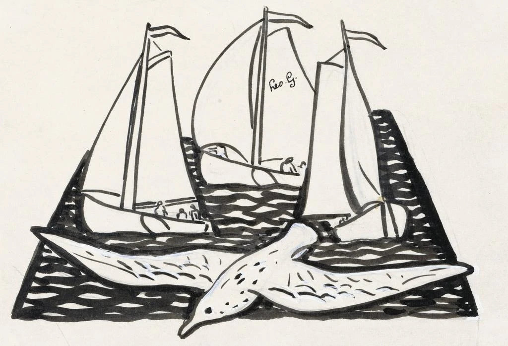 Trois voiliers et une mouette - Leo Gestel