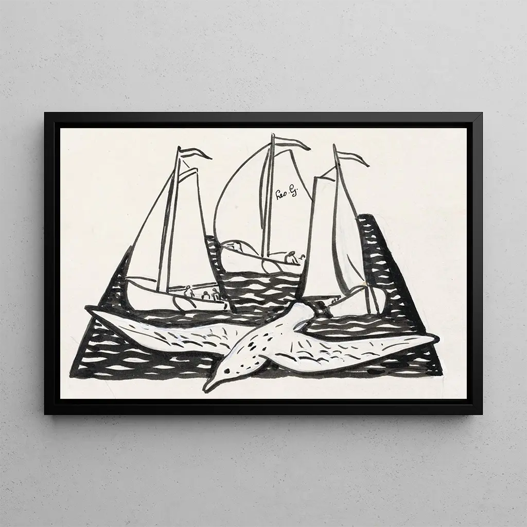La reproduction "Trois voiliers et une mouette" de Leo Gestel évoque une scène vivante et dynamique en mer. Les voiliers, aux voiles blanches gonflées par le vent, se détachent sur un fond de ciel bleu éclatant. Les coups de pinceau audacieux et les couleurs vibrantes insufflent une énergie joyeuse à cette composition maritime. La mouette, symbole de liberté, survole la scène, ajoutant une touche de vie à ce tableau qui capture l'essence d'une journée en mer. Chaque élément de cette œuvre invite à rêver d'évasion et d'aventure.