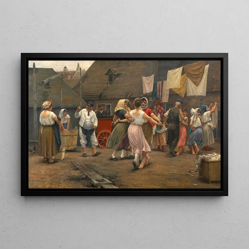 Un bal sur la Hängstatt : une danse au cœur de la vie viennoise La reproduction Un bal sur la Hängstatt de Josef Engelhart nous plonge dans l’effervescence d’un bal viennois, où la joie et l’élégance se rencontrent. Cette œuvre, riche en couleurs vives et en mouvements dynamiques, dépeint des couples en train de danser, vêtus de costumes raffinés. La lumière tamisée et les ombres délicates créent une atmosphère festive et romantique, typique des soirées de la haute société. Engelhart, avec son talent pour capturer le mouvement, réussit à transmettre l’énergie et l’excitation de cet événement social, invitant le spectateur à ressentir l’euphorie de la danse et de la musique. Josef Engelhart : l’éclat de la Belle Époque Josef Engelhart, peintre autrichien actif à la fin du XIXe siècle et au début du XXe siècle, est une figure emblématique de la Belle Époque. Son style, influencé par le mouvement sécessionniste, se caractérise par une attention particulière aux détails et une palette de couleurs vibrantes. Engelhart a été formé à l’Académie des beaux-arts de Vienne, où il a développé son amour pour la représentation de la vie sociale et des événements festifs. Ses œuvres sont souvent considérées comme un reflet de l’insouciance et de l’élégance de son époque, capturant des moments de bonheur partagé au sein de la haute société viennoise. Une acquisition décorative aux multiples atouts La reproduction d'Un bal sur la Hängstatt est un choix décoratif qui saura enrichir votre intérieur. Que ce soit dans un salon, une salle de réception ou un bureau, ce tableau apporte une touche de sophistication et de dynamisme. Sa qualité d’impression assure une fidélité remarquable aux couleurs et aux détails de l’œuvre originale, permettant d’apprécier pleinement la scène animée qu’elle dépeint. L’attrait esthétique de cette toile réside dans sa capacité à évoquer des souvenirs de joie et de fête, transformant votre espace en un lieu de convivialité et d’élégance. En optant pour cette reproduction, vous faites le choix d’une œuvre qui célèbre la beauté des interactions humaines et la magie des moments partagés.