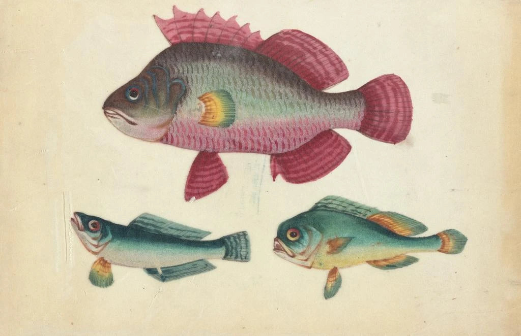 L'artiste de cette œuvre, anonyme, nous plonge dans une tradition artistique souvent liée aux cultures populaires et folkloriques. Les représentations de la faune aquatique sont fréquentes dans l'art de diverses civilisations, symbolisant souvent la fertilité et l'abondance. Ce tableau, bien que sans auteur connu, témoigne d'une époque où l'art servait à célébrer la nature et ses merveilles. Les influences de l'art populaire, ainsi que les techniques artisanales, se mêlent pour offrir une vision unique de la vie aquatique, révélant ainsi l'importance de la nature dans l'imaginaire collectif.