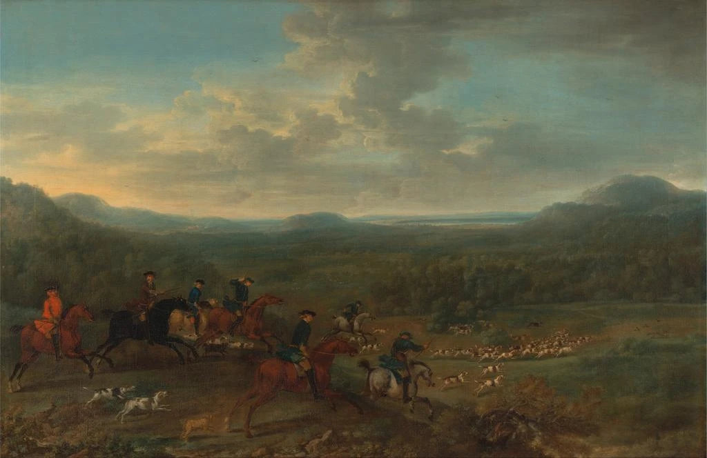 La reproduction d'Une chasse au renard de John Wootton nous transporte au cœur d'une scène animée, où la nature sauvage se dévoile dans toute sa splendeur. Ce tableau, riche en mouvement, capture l'intensité d'une chasse, avec des cavaliers en pleine action et des chiens courant à travers un paysage verdoyant. Les couleurs terreuses et les nuances de vert et de brun évoquent une atmosphère dynamique et vivante. Wootton, avec son talent pour le détail, réussit à transmettre l'énergie de l'instant, faisant de cette œuvre une véritable célébration de la vie en plein air et des traditions de la chasse.