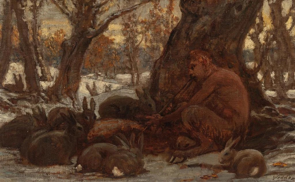Ung Marsyas som förtrollar kaniner - Elihu Vedder