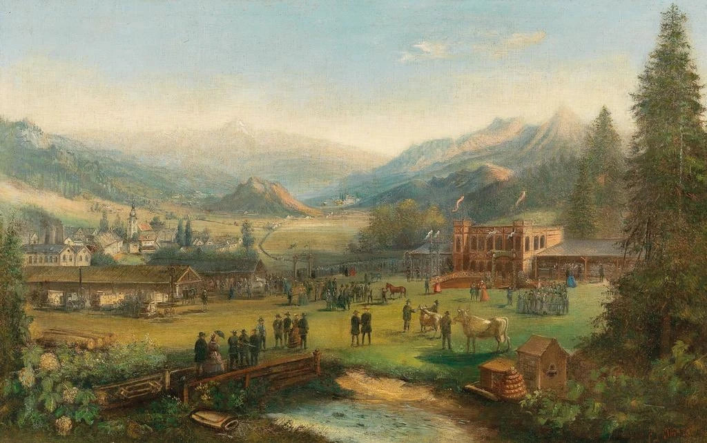 Vallée avec usine et bâtiment de fête - Carl Thöndel