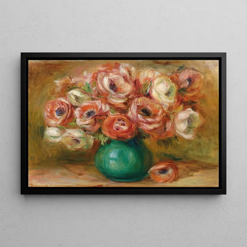 Pierre-Auguste Renoir est l'un des artistes les plus emblématiques du mouvement impressionniste, qui a émergé à la fin du XIXe siècle en France. Né en 1841, il a été influencé par des maîtres tels que Monet et Degas, mais a développé un style qui lui est propre, caractérisé par des couleurs lumineuses et des compositions dynamiques. Son œuvre se concentre souvent sur la vie quotidienne et la beauté de la nature, comme en témoigne "Vase d'anémones". Renoir a su capturer l'essence de son époque, et son héritage perdure à travers ses toiles, qui continuent d'inspirer et d'émerveiller.